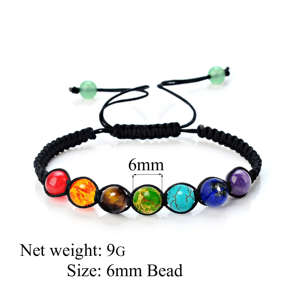 Браслет с 7 чакрами из натуральных лечебных камней, браслет с бусин...