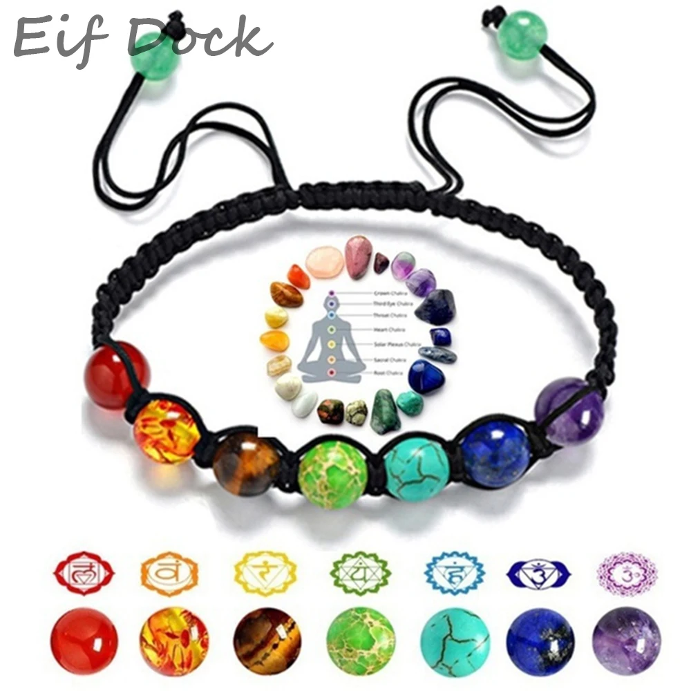 Eif Dock 7 Чакра исцеляющая Бусина Браслет из натурального камня Mala подвеска баланс браслеты для женщин мужчин Йога ювелирные изделия Прямая поставка