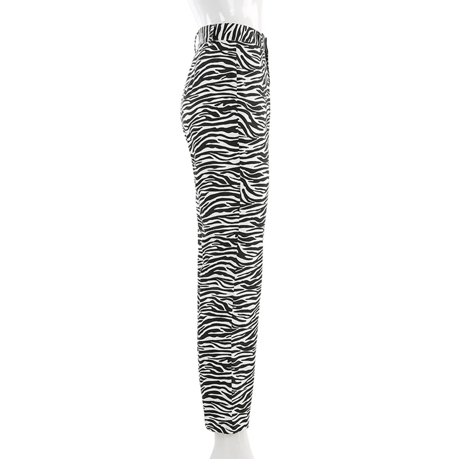 Женские прямые джинсы с принтом зебры, повседневные брюки с высокой талией и карманами, Размеры S-l