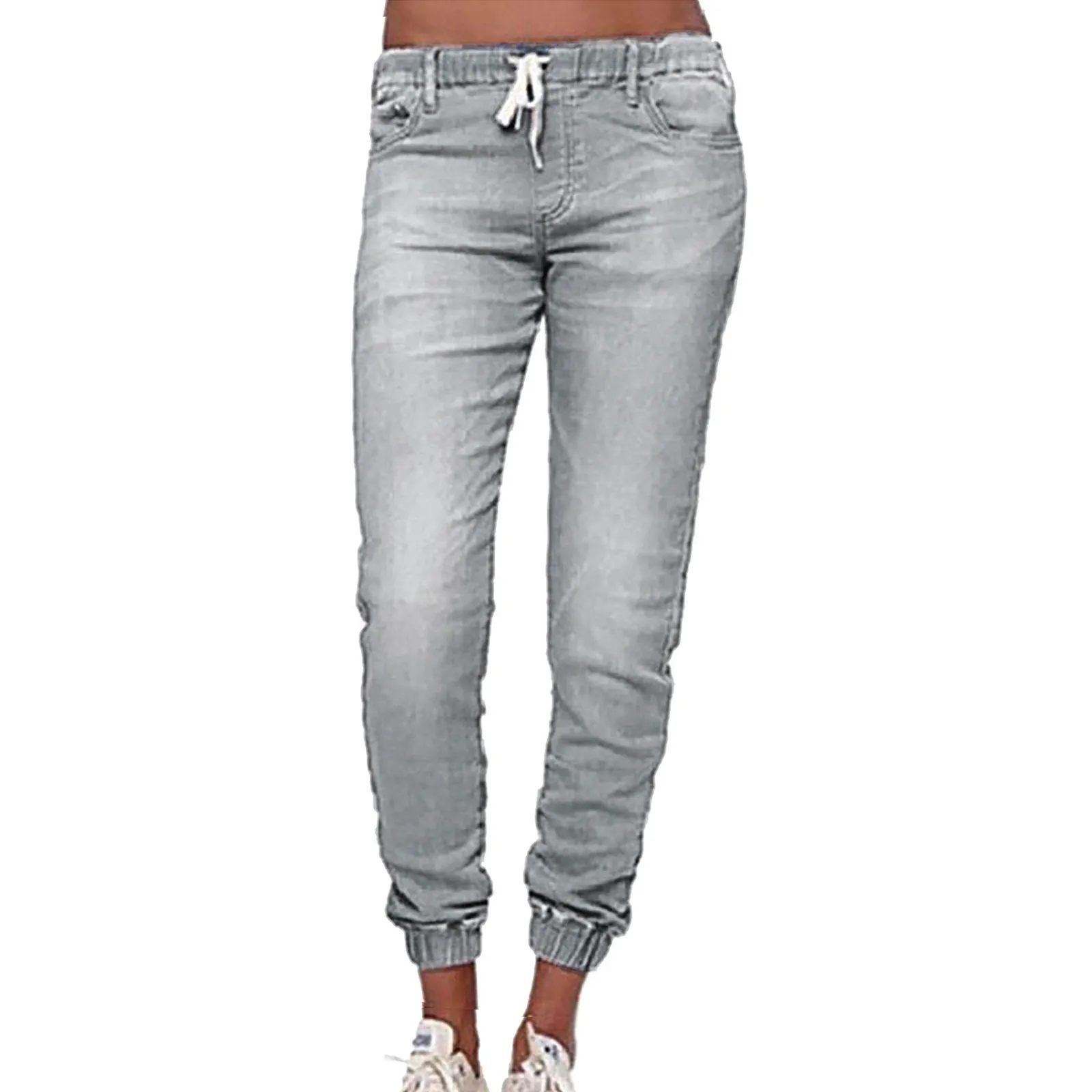 Женские джинсовые штаны со средней талией на шнуровке, джинсовые повседневные штаны