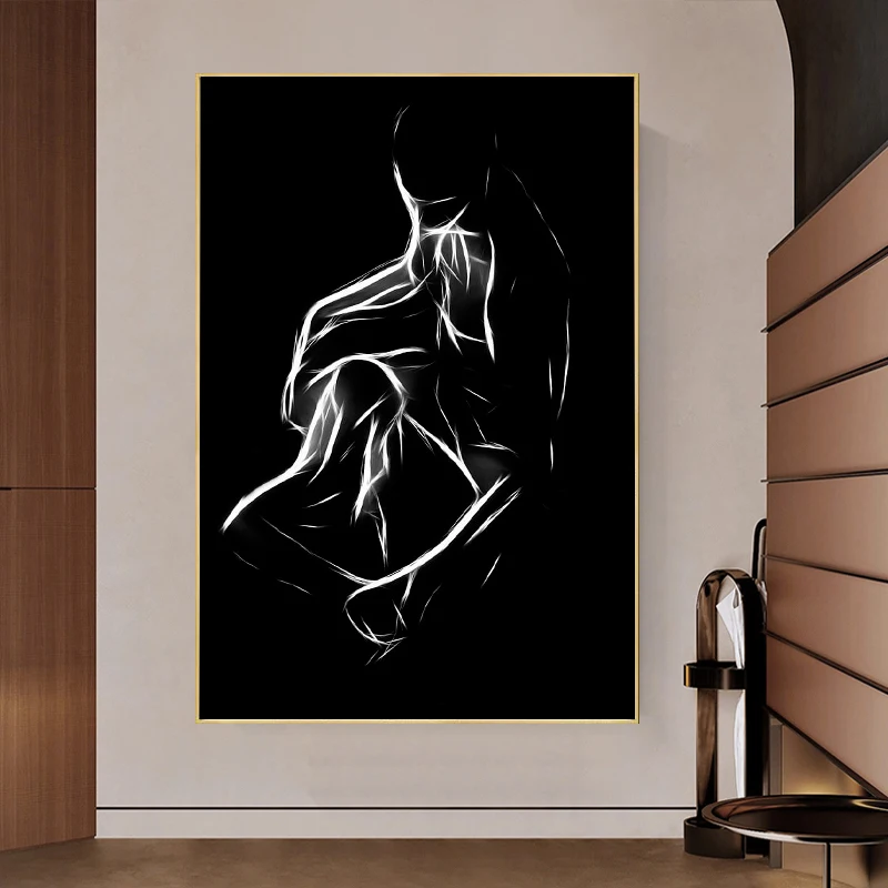 Картина на холсте Черно-белая Обнаженная пара, сексуальное тело, женское, мужское, настенное искусство, печать, Настенная картина для комнаты, домашний декор, Куадрос