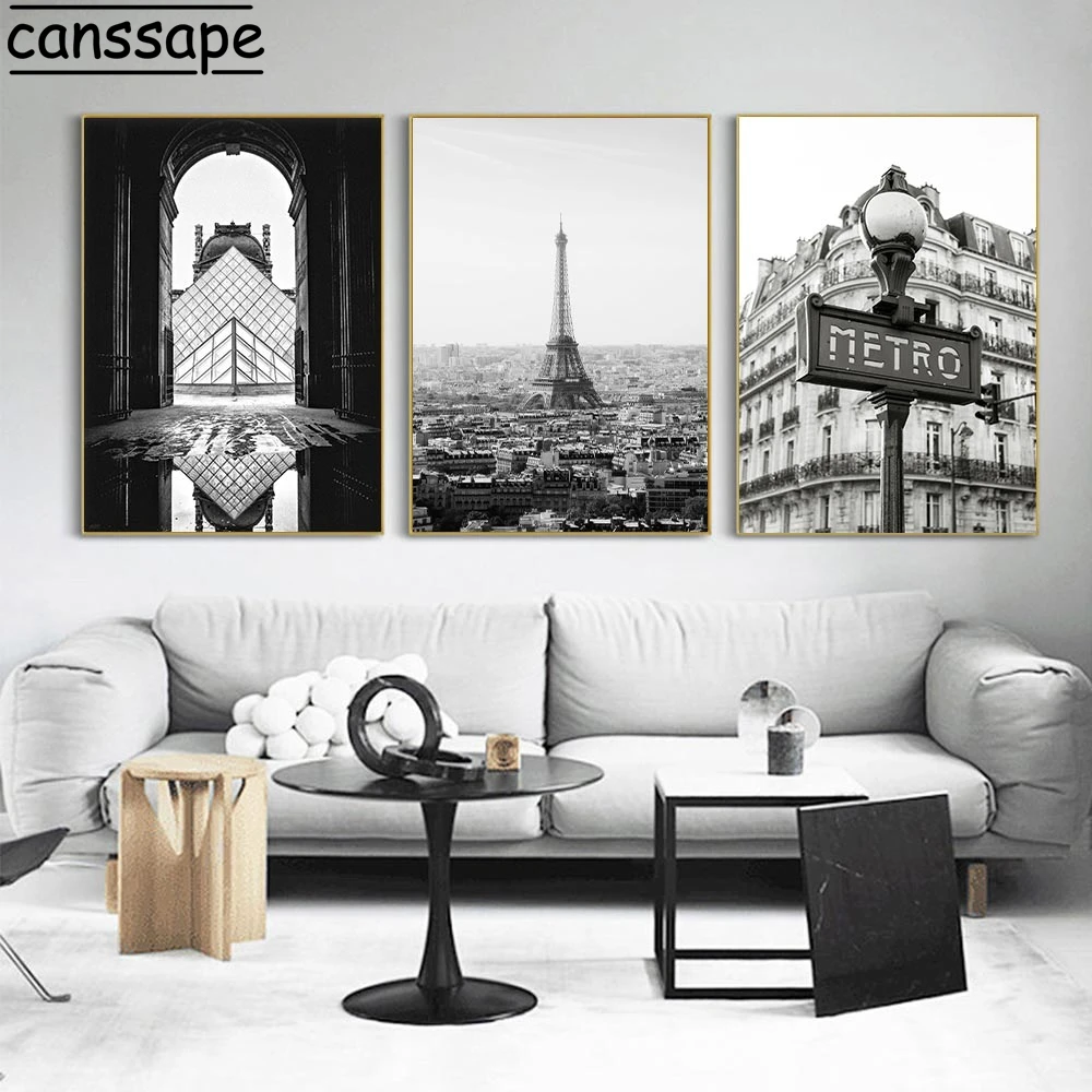 Черно-белый постер, городской пейзаж, холст, живопись, постеры метро, башня, печать, современные настенные картины для украшения гостиной