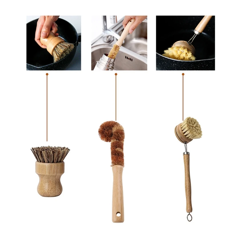 Набор кистей для чистки на основе растений, Бамбуковая кухонная щет...