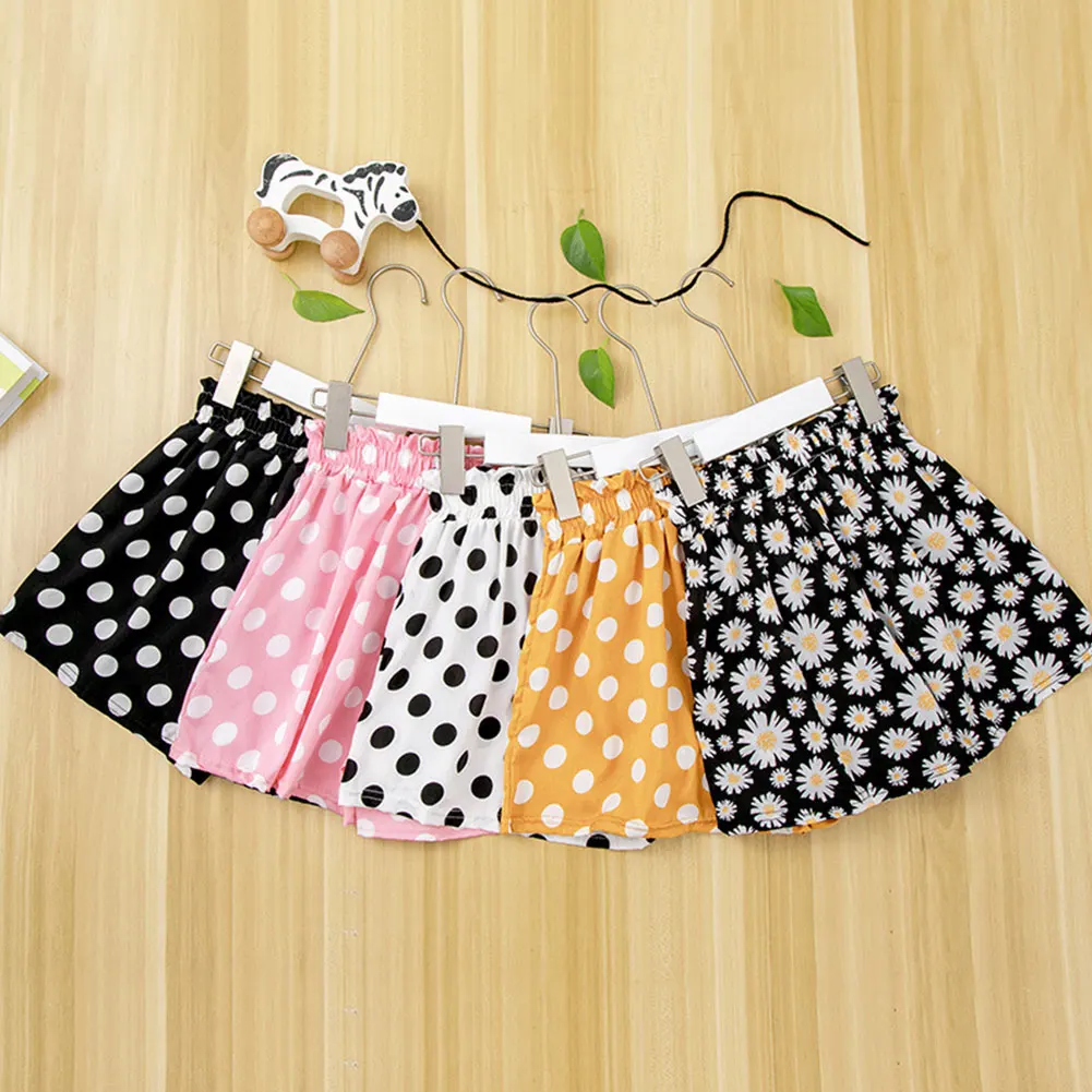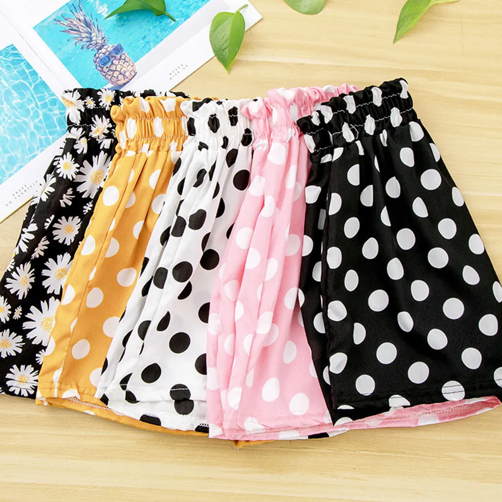 Детские летние шорты детская повседневная юбка из полиэстера в горошек с высокой талией тонкие спортивные штаны повседневные шаровары для девочек