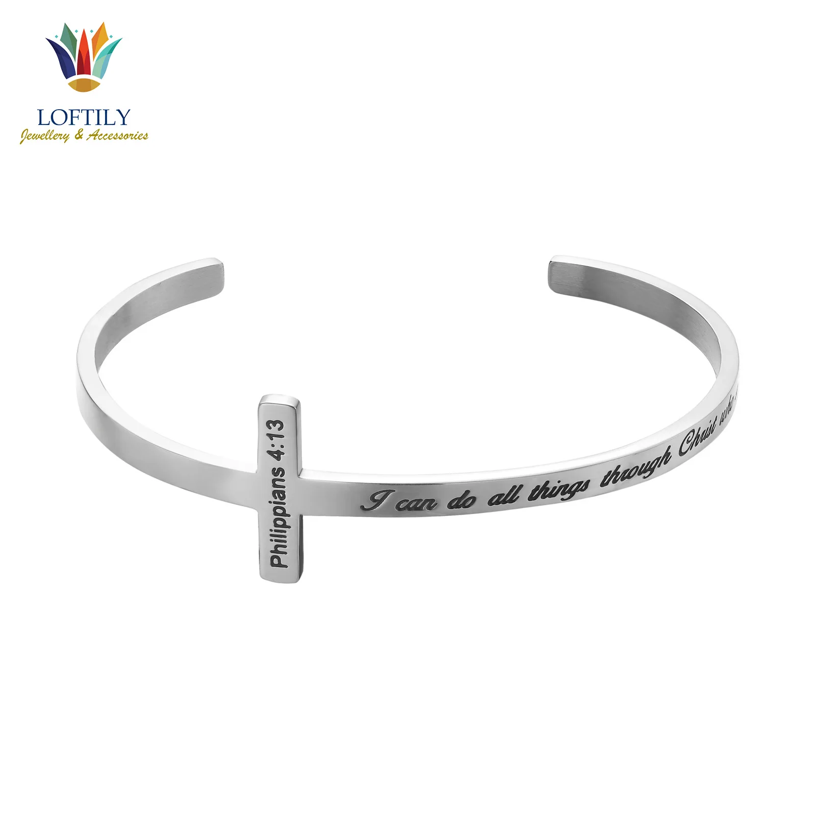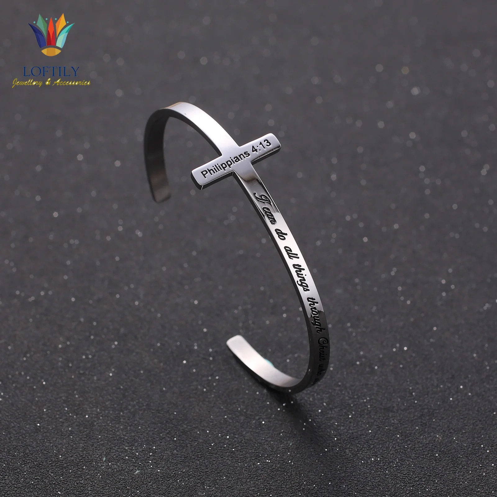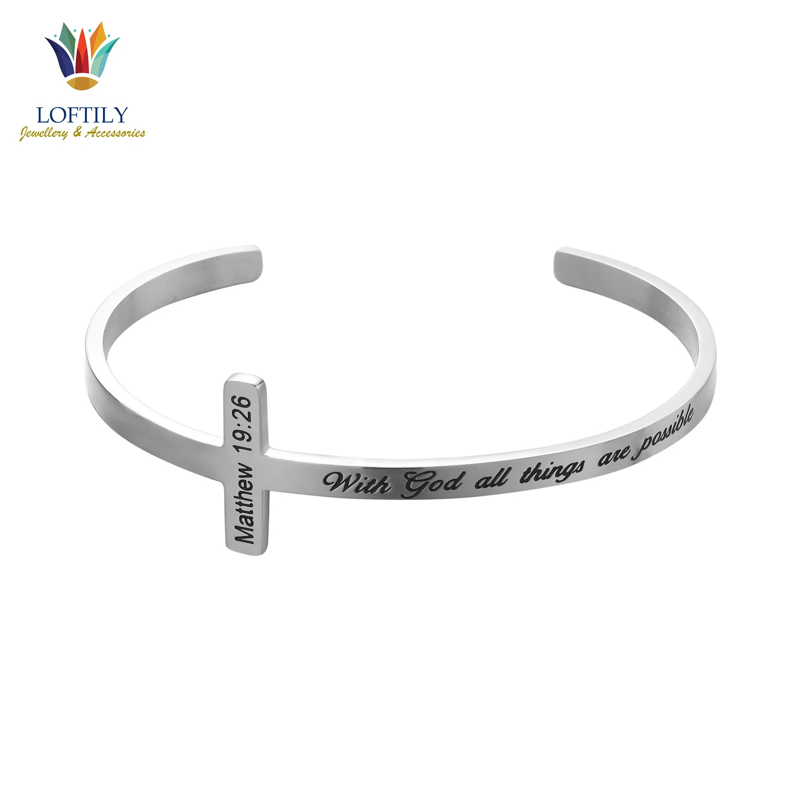 Регулируемые браслеты из нержавеющей стали с изображением Иисуса и Креста для женщин, мужские ювелирные изделия, манжета, Христианский подарок, молитесь ко всему Богу