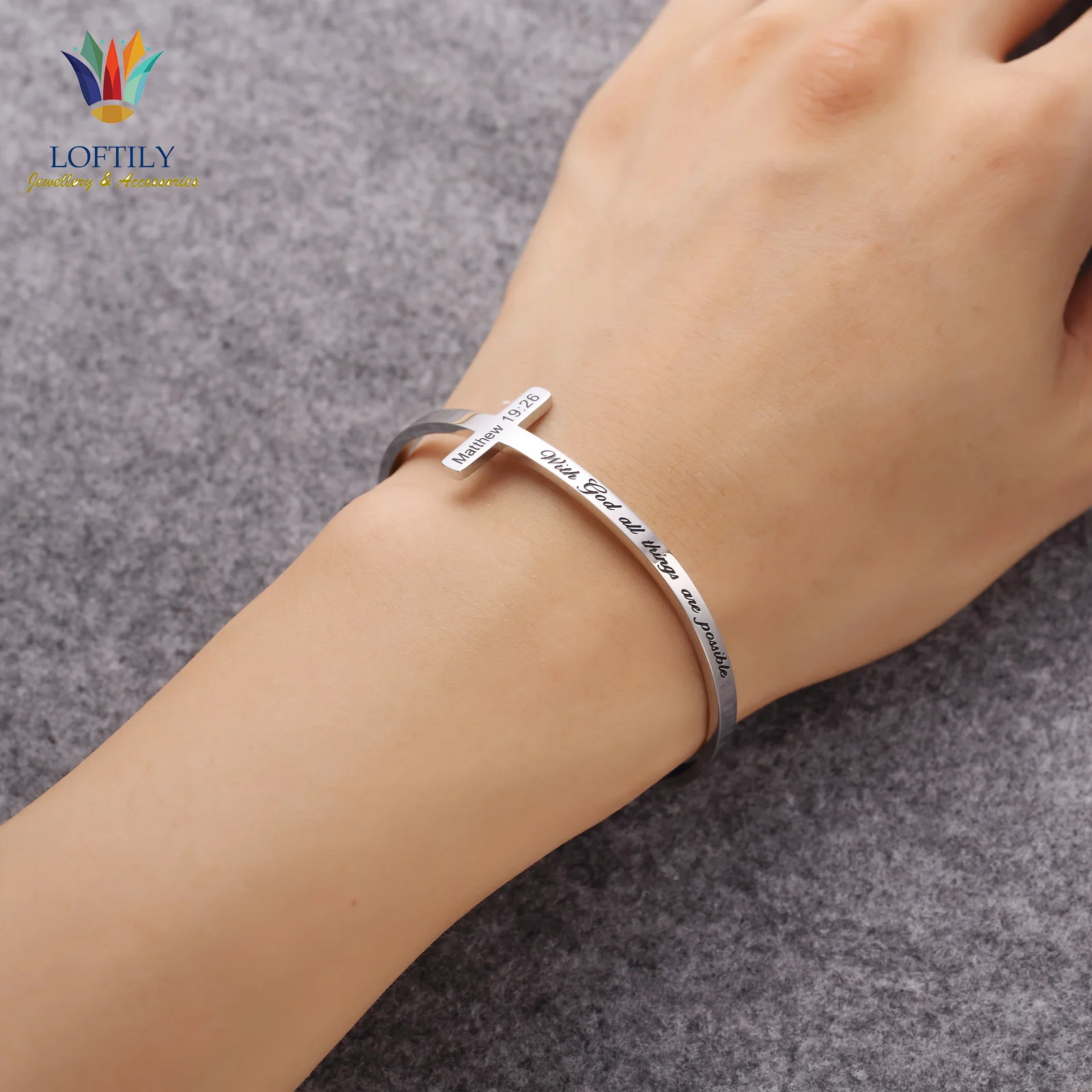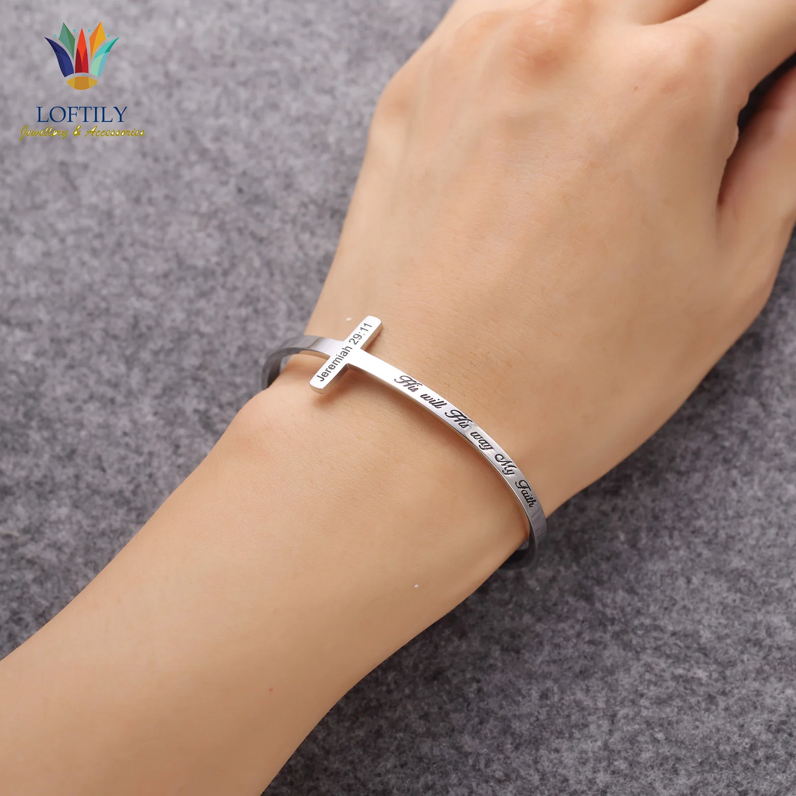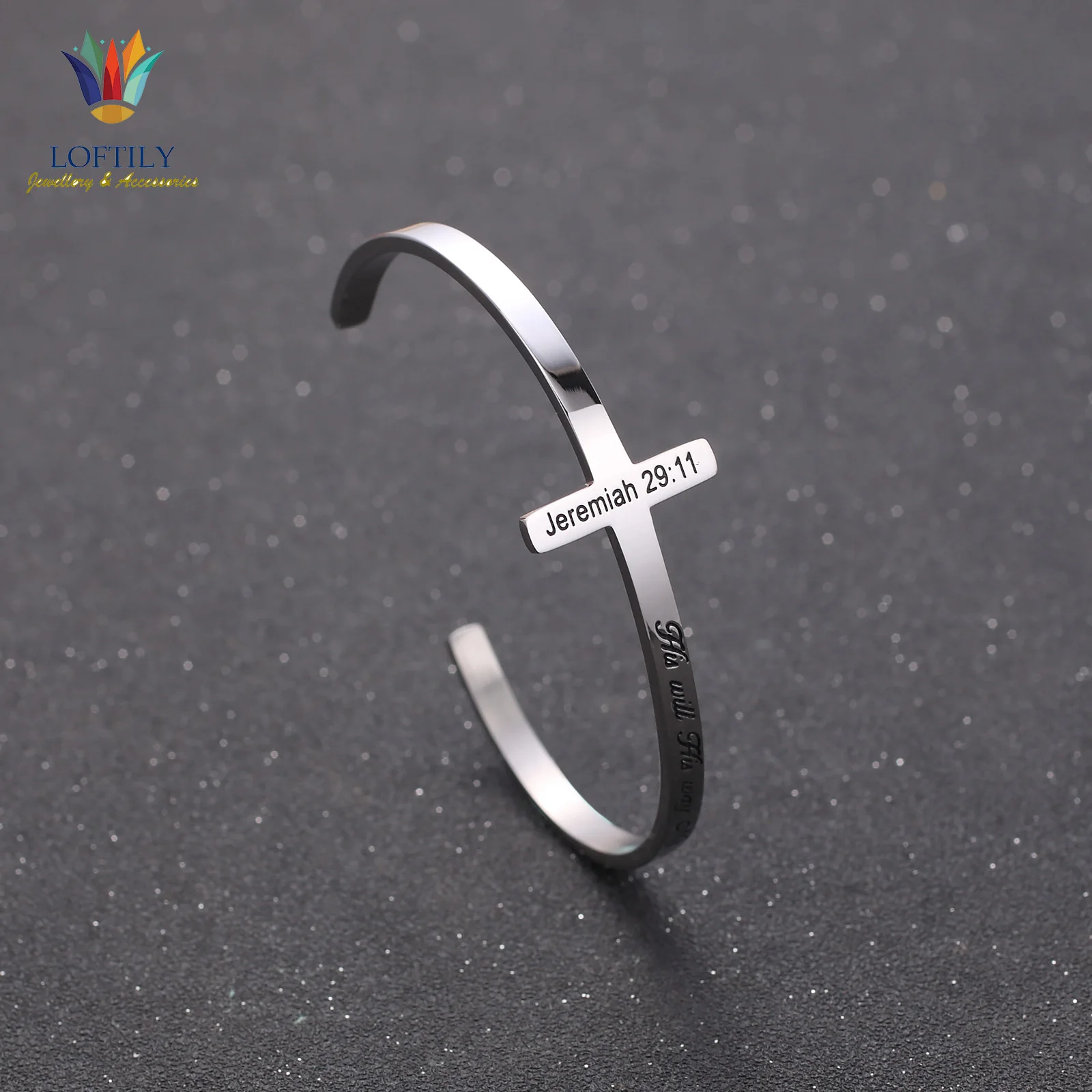 Регулируемые браслеты из нержавеющей стали с изображением Иисуса и Креста для женщин, мужские ювелирные изделия, манжета, Христианский подарок, молитесь ко всему Богу