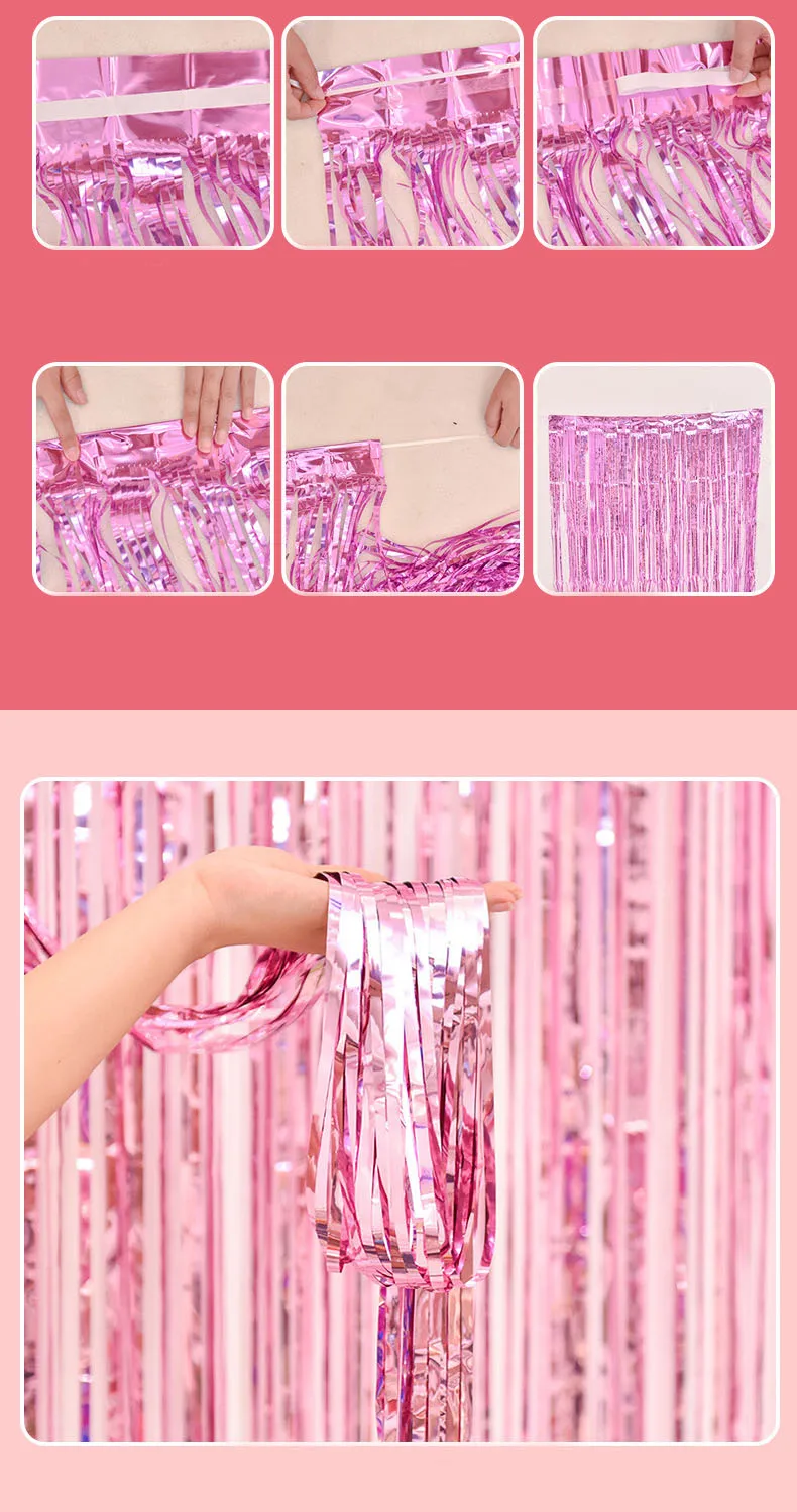 Розовое золото, Мерцающая бахрома, мишура, дверь, занавески, фотозо...