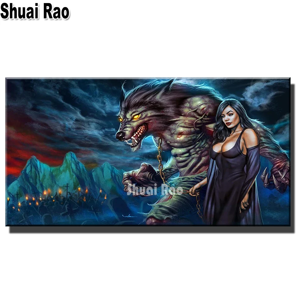 "Fantasy Wolf" Женщина 5d Сделай Сам алмазная живопись оборотень и призрак королевы вышивка камни в форме ромбакруглых бриллиантов мозаичный пазл с украшением в виде кристаллов