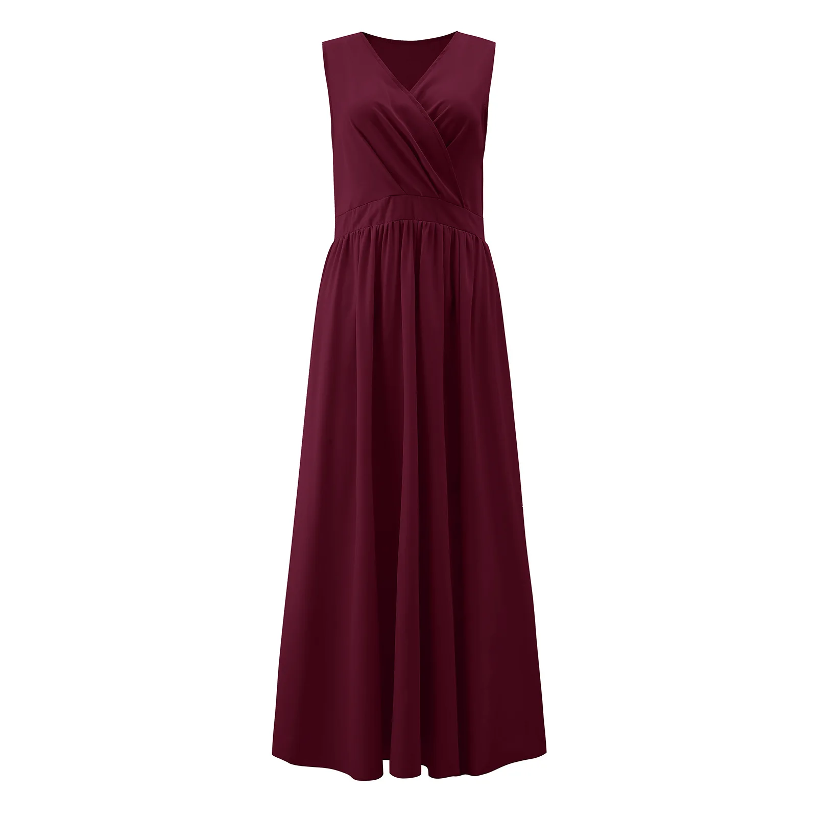 Вечернее платье макси без рукавов, с V-образным вырезом