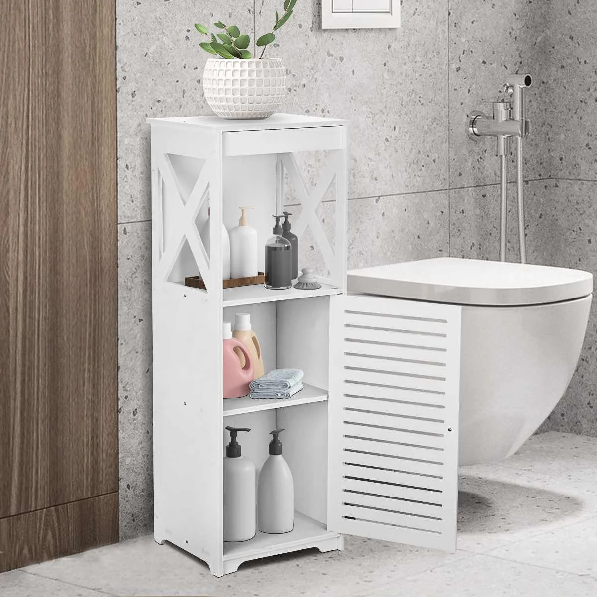 Особенности товара:Тип: 3 Круглый Ланч-боксЦвет: белыйТребуется сборка: ДаХарактеристики: Водонепроницаемость и влагостойкостьМатериал: древесно-пластиковая композитная доска (WPC)Размер: 28x24x80 см/11,0x9,4x31,5 дюйма (прибл.)Посылка включает в себя:1 х шкафКомплект винтов-1 шт.1 x Инструкция(Другие украшения не входят в комплект)Особенности:● Экологический материалНаш отдельно стоящий шкаф для ванной комнаты изготовлен из древесно-пластиковой доски, экологически чистый, антикоррозийный. Прочная и стабильная конструкция обеспечивает высокую надежность, прочность и долговечность.● Узкое хранилище для ваннойЭто идеальный элемент для хранения для маленькой ванной/душевой комнаты; Есть много места для всех ваших туалетных принадлежностей и косметики, чтобы сохранить вашу ванную комнату аккуратной и организованной; С тонким мастерством, простой и элегантный внешний вид может легко сочетаться с любой домашней мебелью.● Простая сборкаБыстро и легко установить в течение нескольких минут. Для справки в посылка включена Инструкция по сборке.● Водонепроницаемость и простота очисткиЭтот цвет шкафа белый, но вам не придется беспокоиться о его проблемах с уборкой, шкаф можно мыть непосредственно в воде, а затем вытереть.Напоминание:● При получении продукта, пожалуйста, подтвердите аксессуары в соответствии со списком инструкций.● Рекомендуется, чтобы установка не была слишком жесткой, чтобы легко регулировать. После установки конструкции, прочное соединение для большей стабильности.