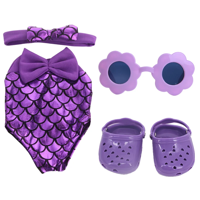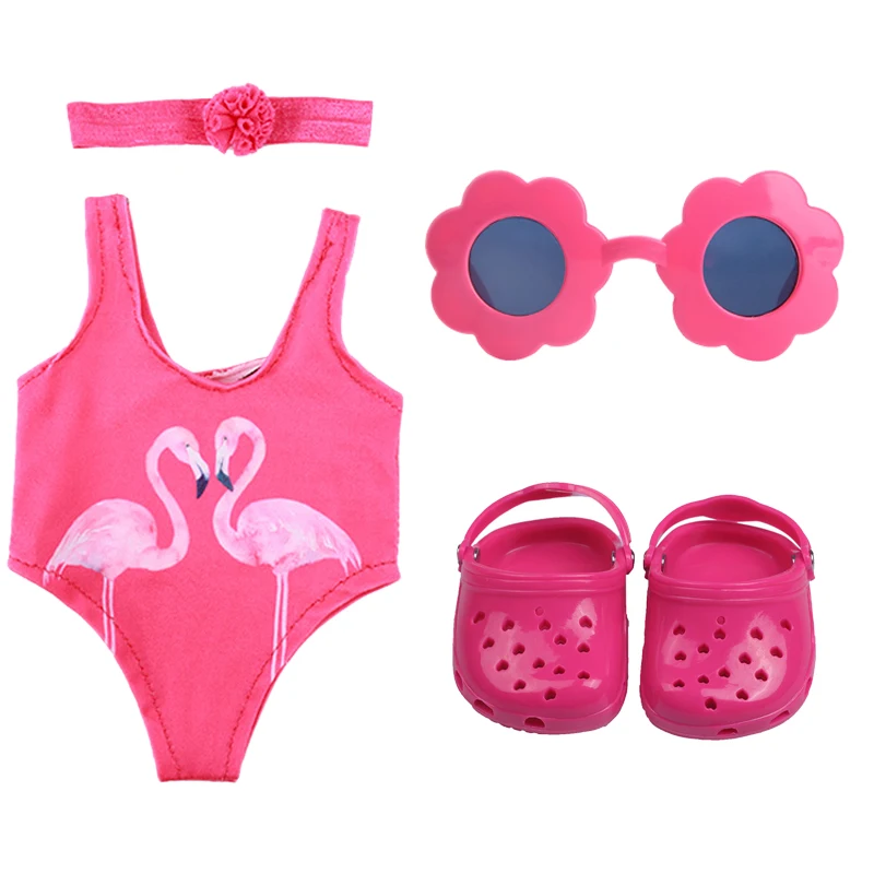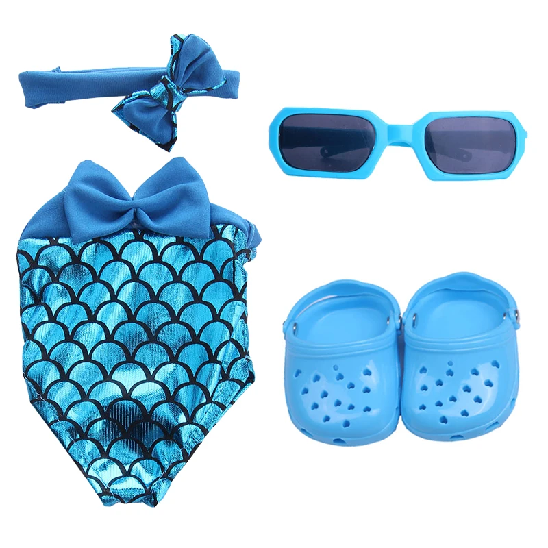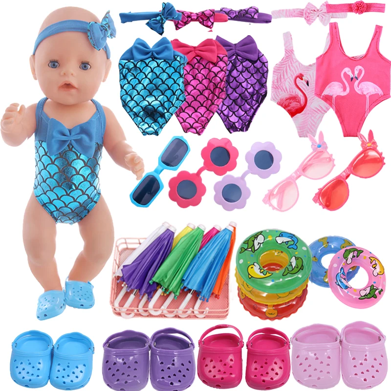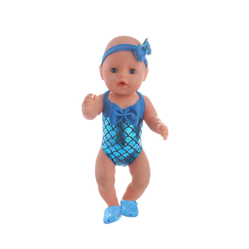 Кукольная одежда купальный костюм Raniy аксессуары Летняя обувь с перфорацией, тапочки для девочек 18 дюймов American 43 см для ухода за ребенком для мам для новорожденных нашего поколения девушки подарок