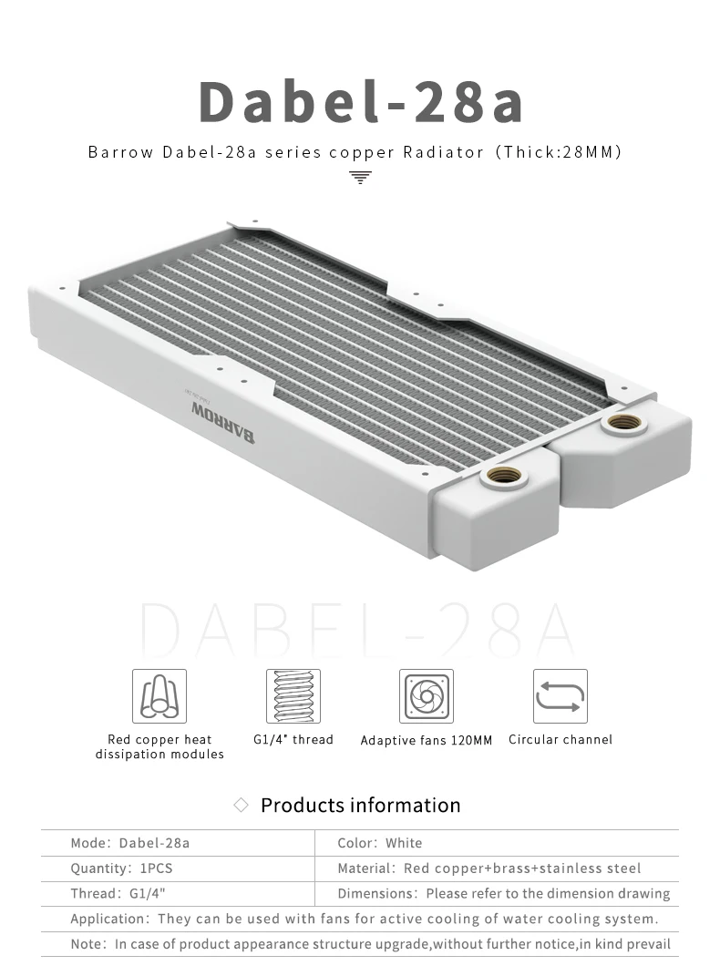 BARROW толщиной 28 мм, медный 240 мм белый радиатор, компьютерный водяной охлаждающий жидкостный обменник G14, резьбовой, для вентиляторов 12 см