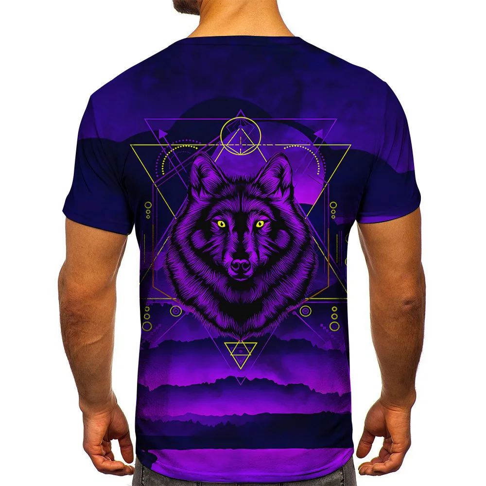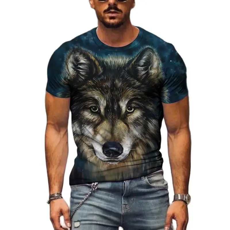 Футболка мужская с 3D-принтом волка, модная Повседневная рубашка с коротким рукавом, с круглым вырезом, в уличном стиле, лето