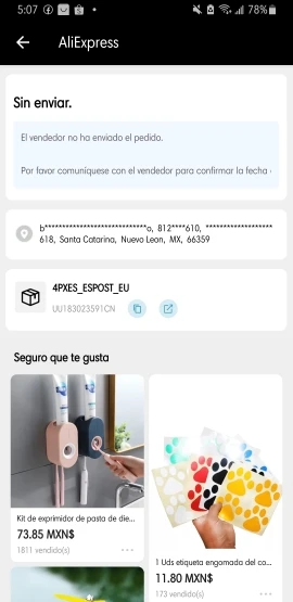 Я не получил товар! Доставка не прибыла в Болгарию! 08/28/2021 внимание: 1. Испания не является страной отправки в уведомлении. Заказ был сделан с доставкой из Франции. Продавец отправляет товар из Испании!? 2. Продавец сомневается в адресе. Я сообщил ему адрес, где я успешно получил до сих пор. 3. Нет информации о доставке с этим номером отслеживания 201702819 в Болгарию (София). Если посылка будет возвращена или повреждена! Я не поддерживаю разрешение спора! Я не винен в том, что не получил посылку (уничтожен)! Aliexpress защищает лгунов, КРОК! Тот же продавец 11 августа 2021 года сказал, что я его получу! Уважаемые клиенты, мы связываемся с поставщиком. Пожалуйста, подождите терпеливо. Товары будут доставлены вам в ближайшее время. И в предоставленных им показаниях можно увидеть за пределами доставки/не удалось получить 5 августа 2021 года!