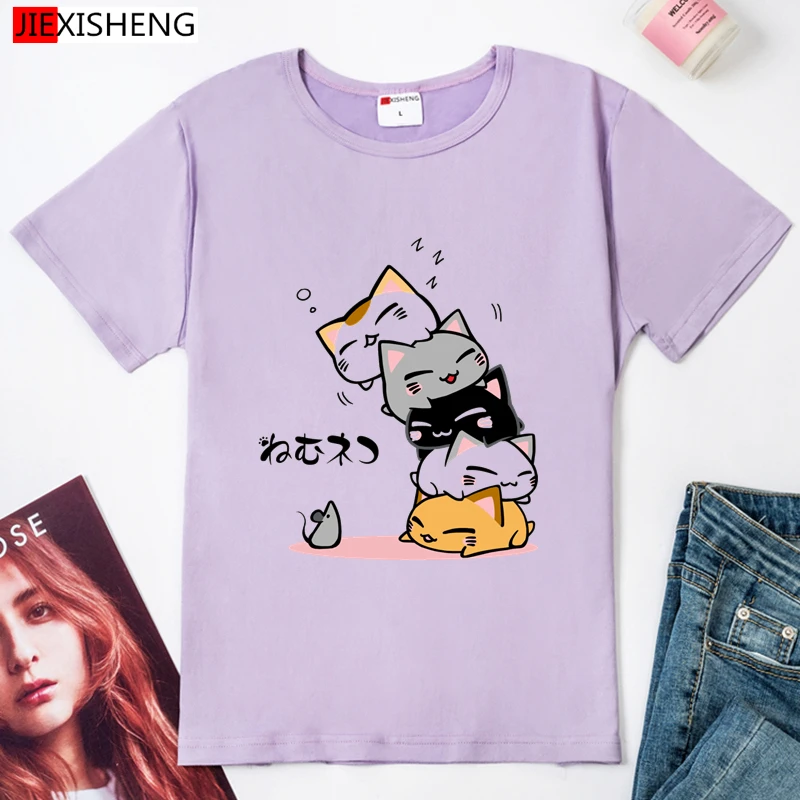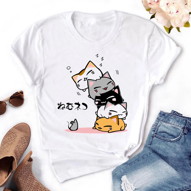 Японский Стиль кошка не сегодня женская футболка размера плюс с кор...