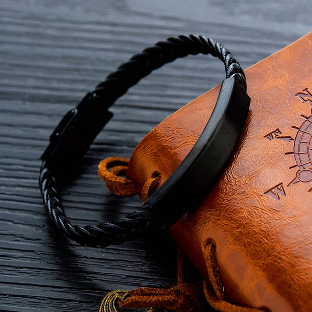 Очаровательный плетеный кожаный браслет из нержавеющей стали на заказ для мужчин и женщин, регулируемые Индивидуальные ювелирные изделия, браслеты, подарок, оптовая продажа