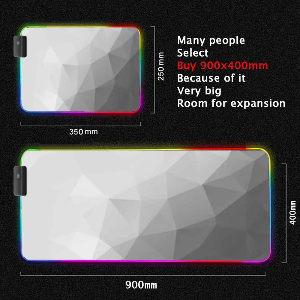 Черный, белый светодиодный коврик для мыши с RGB клавиатурой, Настольный коврик с красочной поверхностью, коврик для мыши XXL, водонепроницаемый многоразмерный компьютерный геймер CS Dota