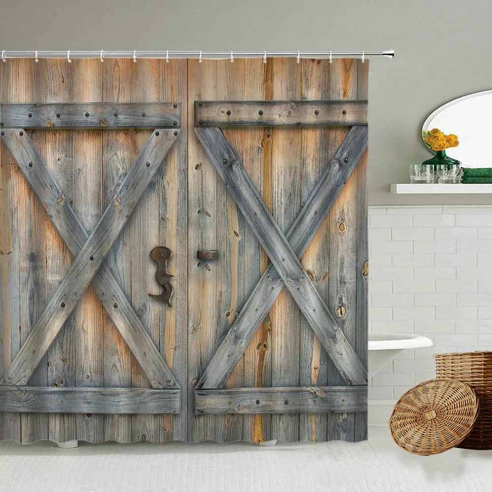 Занавеска для душа в стиле ретро, с геометрическим рисунком, для деревянной двери, для загородного дома, сарая, для украшения ванной комнаты, водонепроницаемый экран