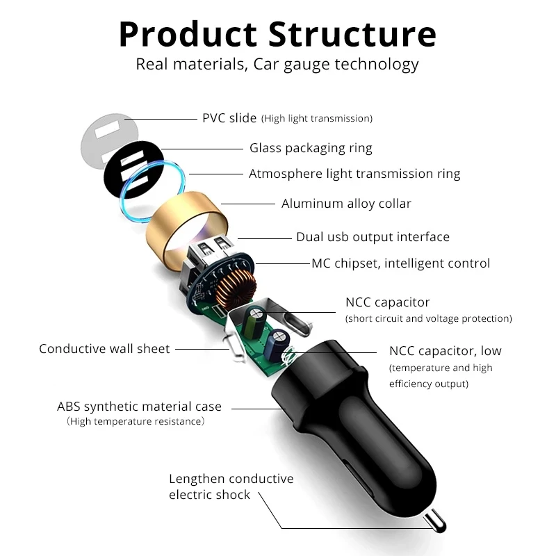 3.1A 5V Dual USB Автомобильное зарядное устройство со светодиодным ...