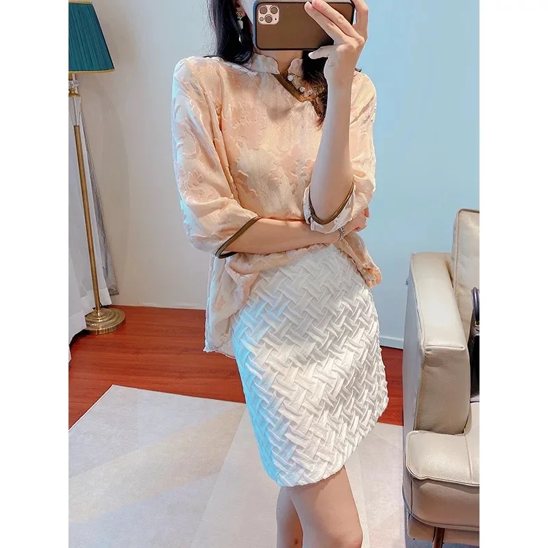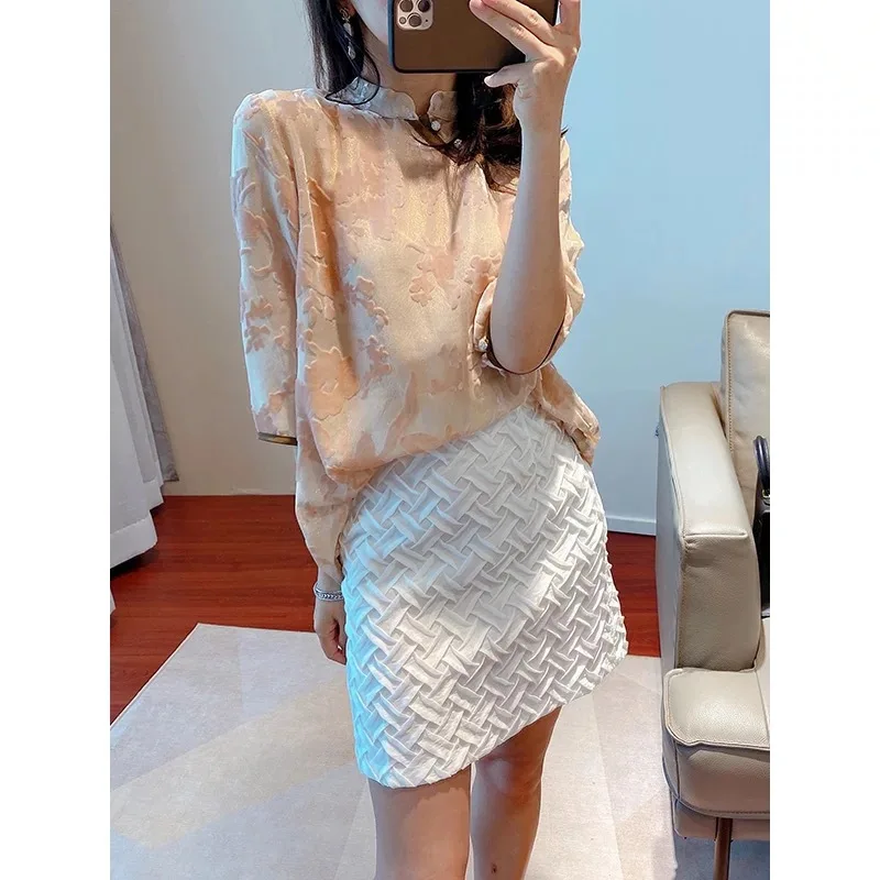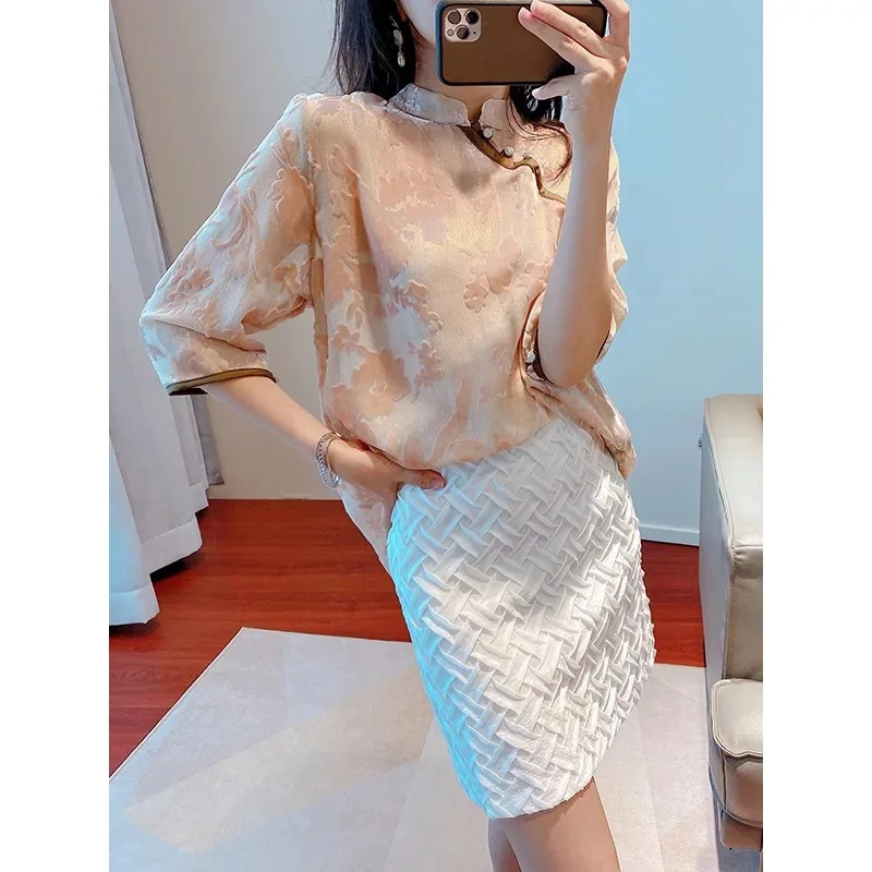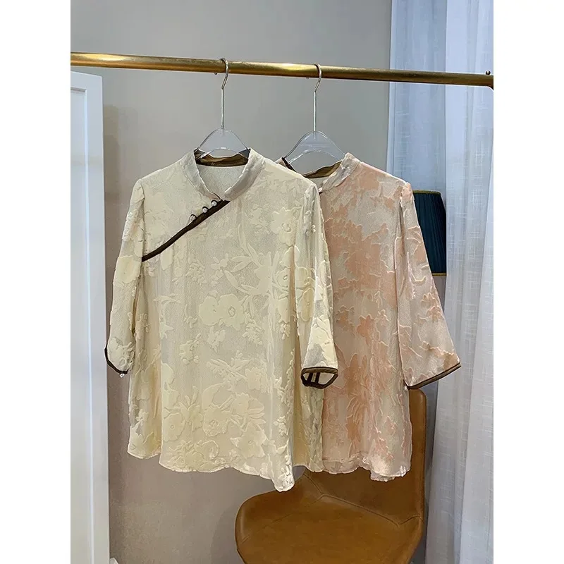 Женская блузка в китайском стиле, летняя блузка из шелка тутового шелкопряжа с дисками и сгоревшими цветами, новинка 2021