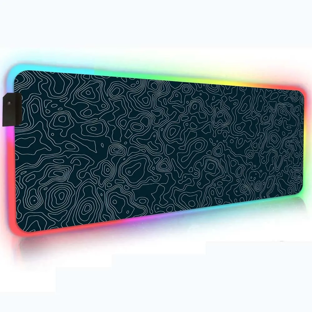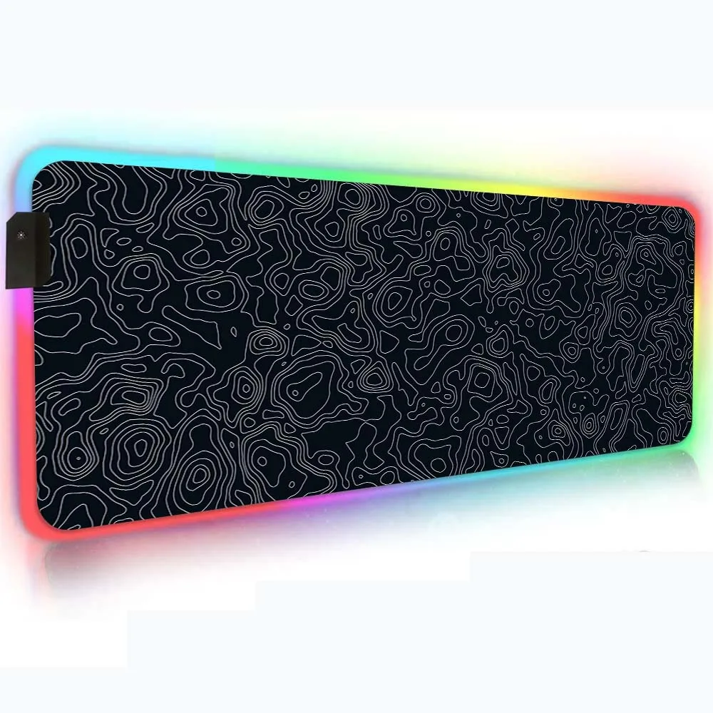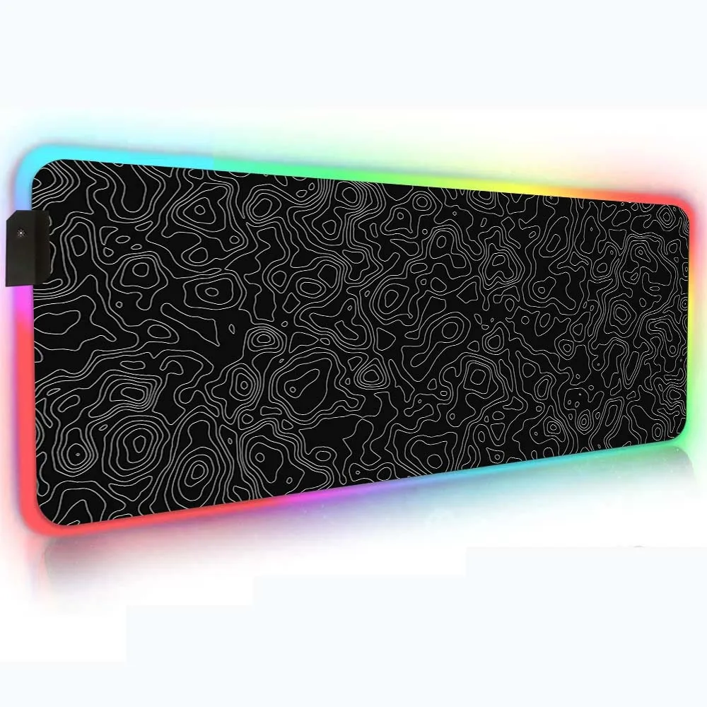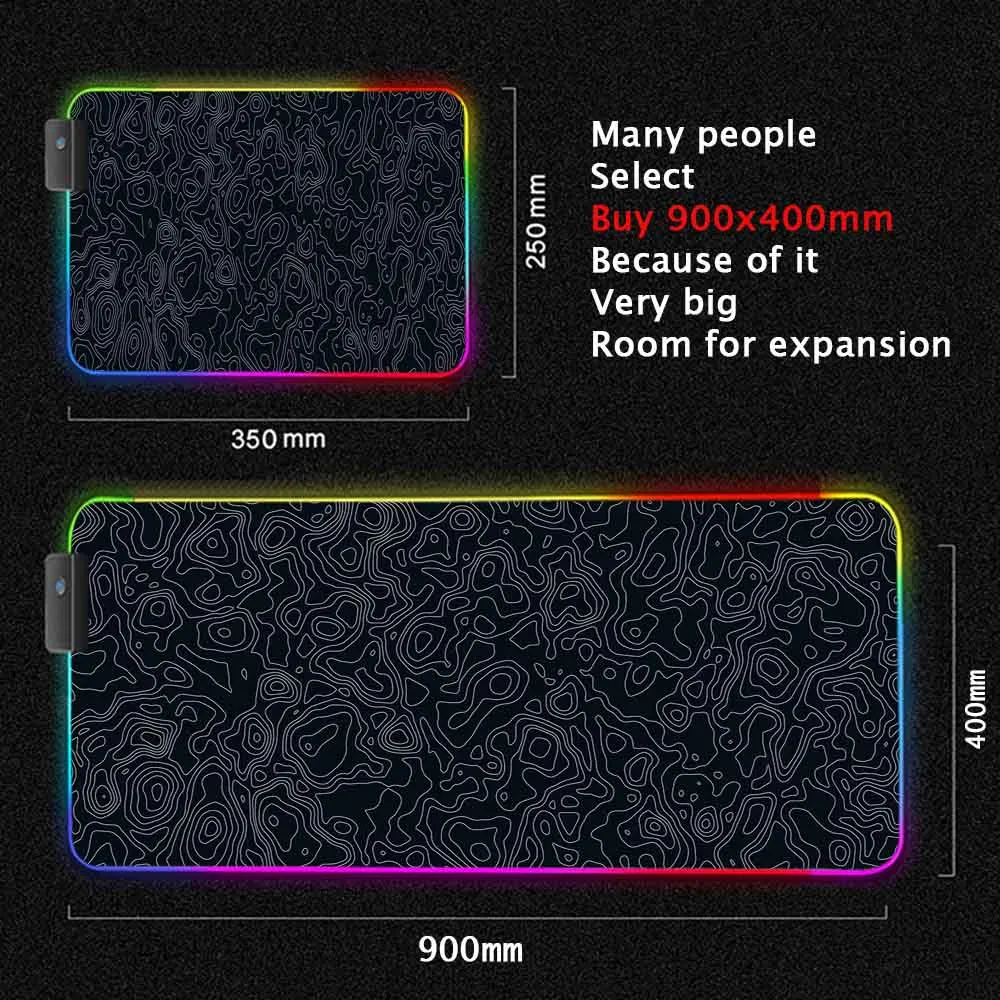 Игровой компьютерный коврик для мыши с черной и белой текстурой RGB, большой коврик для мыши с подсветкой XXL, коврик для мыши со светодиодной подсветкой, коврик для игр 900x400, Настольный коврик для CS