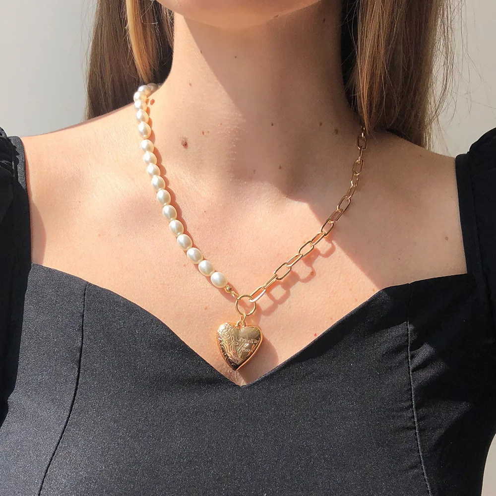 Колье из искусственного жемчуга, ожерелье с подвеской в форме сердца, Dssymmetric цепи для ювелирных изделий, персонализированные Naszyjniki Damskie