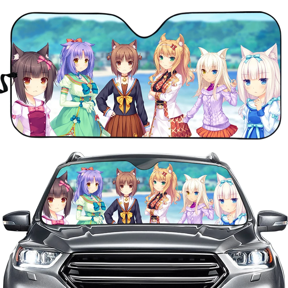 Солнцезащитный козырек на лобовое стекло автомобиля с аниме принтом Nekopara, солнцезащитный козырек на лобовое стекло автомобиля, солнцезащитный козырек на лобовое стекло автомобиля