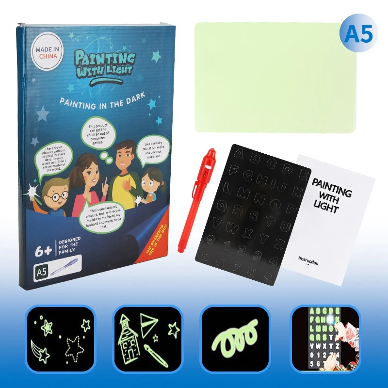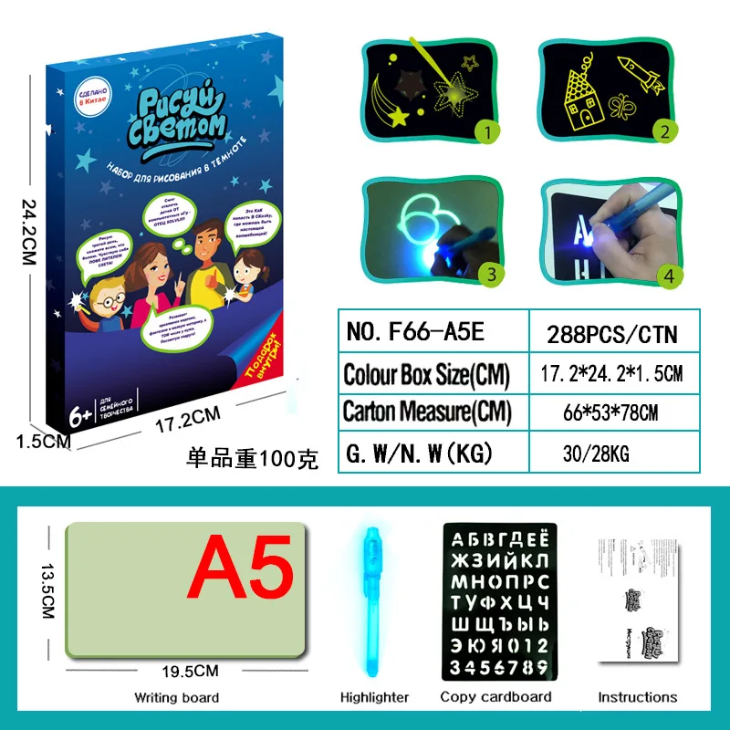 Волшебная светящаяся доска для рисования, детская игрушка, планшет в темноте, флуоресцентная ручка, Русский Английский светильник, развивающие игрушки для детей, подарки, доставка! ! Дети любят рисовать на стене, что является проблемой многих матерей. В данный момент, давайте Попрощайтесь со стеной граффити каждый раз, когда вы нажимаете его, меняете один цветной светильник, последний пресс, несколько циклов светильник мигает губкой, влажная Чистка, можно использовать повторяющиеся Особенности: Номер модели: Волшебная доска для рисования материал: картон Размер: A5:15*22*2 см (ширина * длина * толщина) список продуктов: световая доска * 1, ручка * 1, руководство * 1, письмо-карта * 1 Примечание: 1. Держите подальше от fire2.без оригинальной подарочной коробки, мы будем использовать полиэтиленовый пакет, чтобы упаковать его хорошо и защитить его хорошо, пожалуйста, не worry3.из-за разницы между различными мониторами, изображение может не отражать фактический цвет изделия. Мы гарантируем, что стиль такой же, как показано на рисунках. 4.измерение вручную может иметь погрешность в 2-3 см