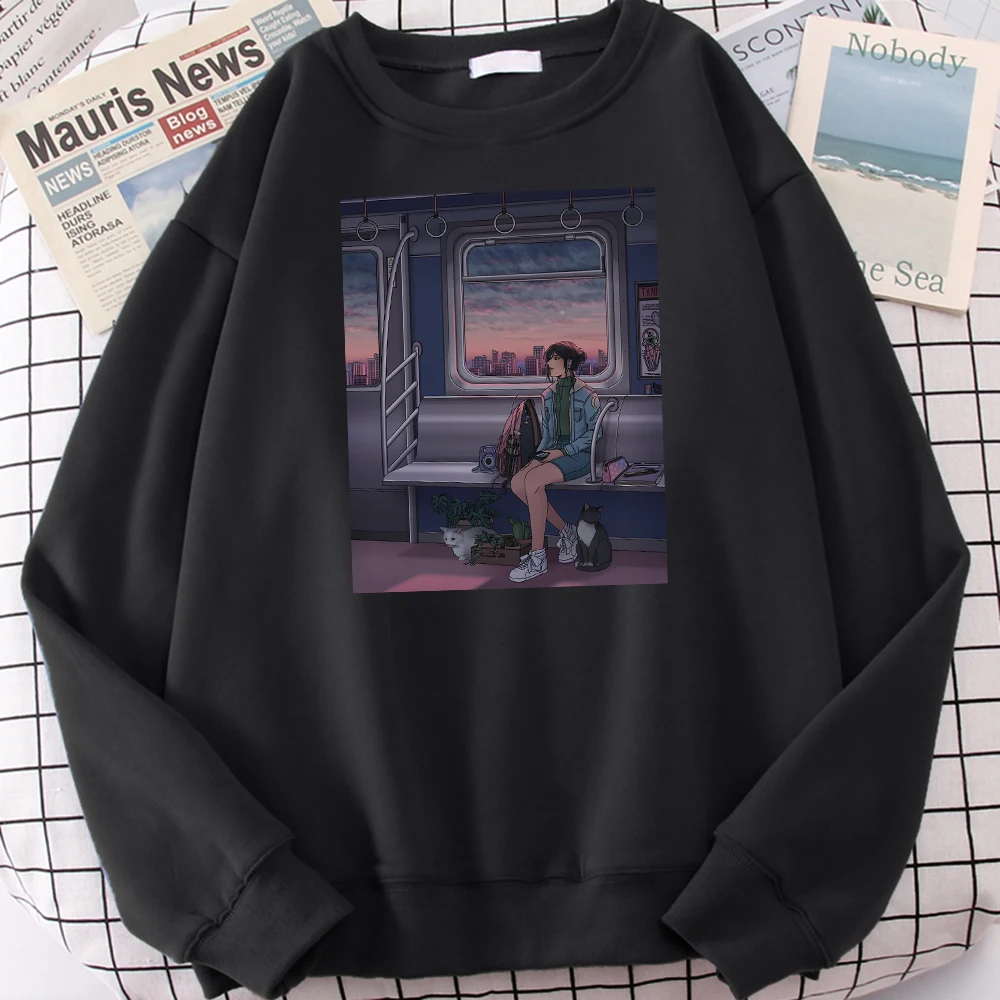 Картина маслом Кошачьи сумерки Толстовки с принтом женский свободны...