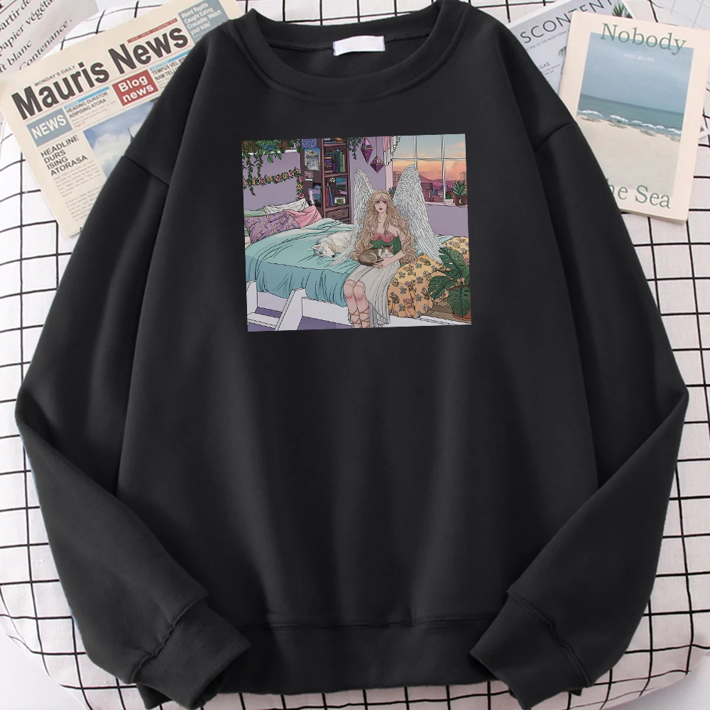 Толстовка мужская флисовая, с изображением ангела, свободная, тепла...