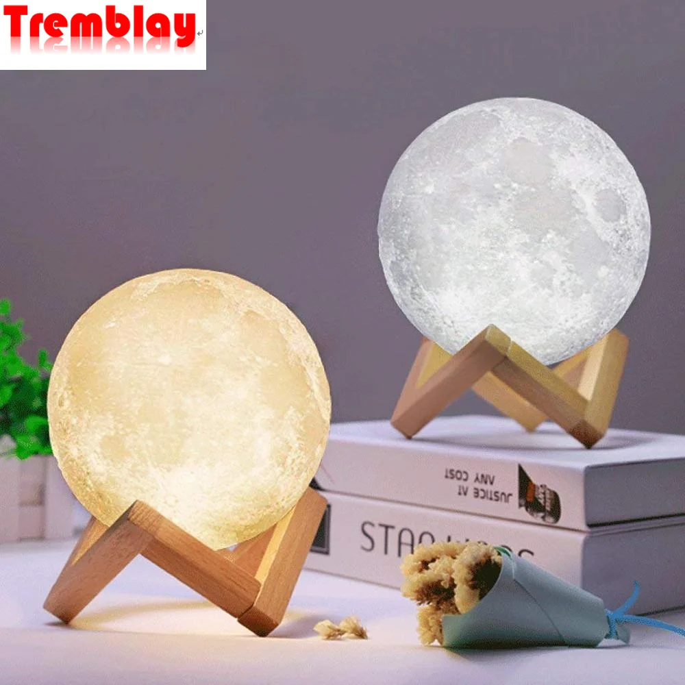 3D печать, USB перезаряжаемая лампа в виде Луны, светодиодный ночни...