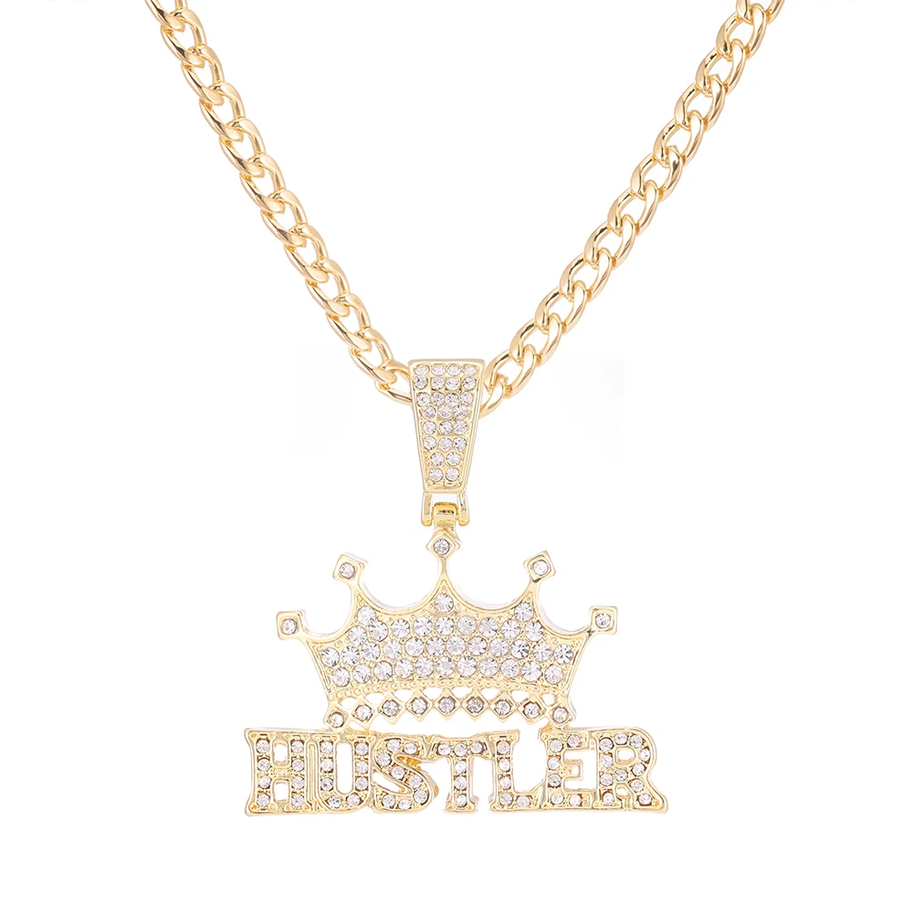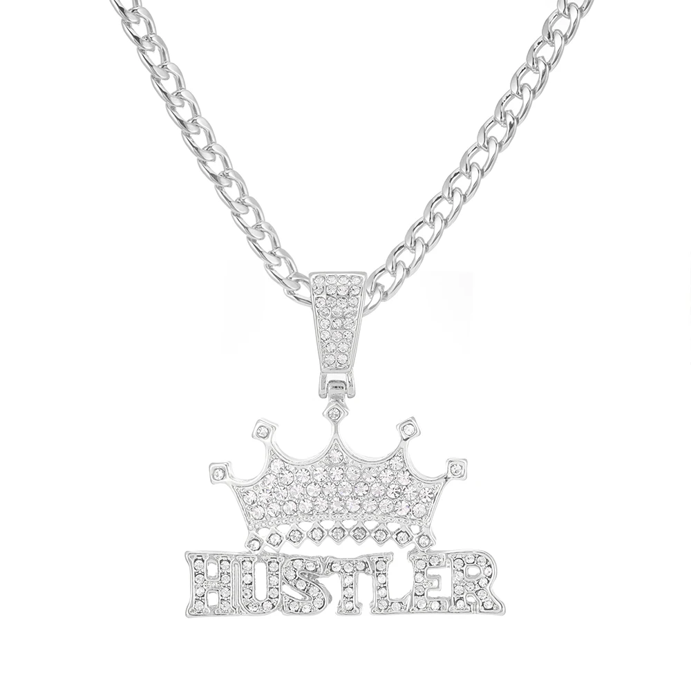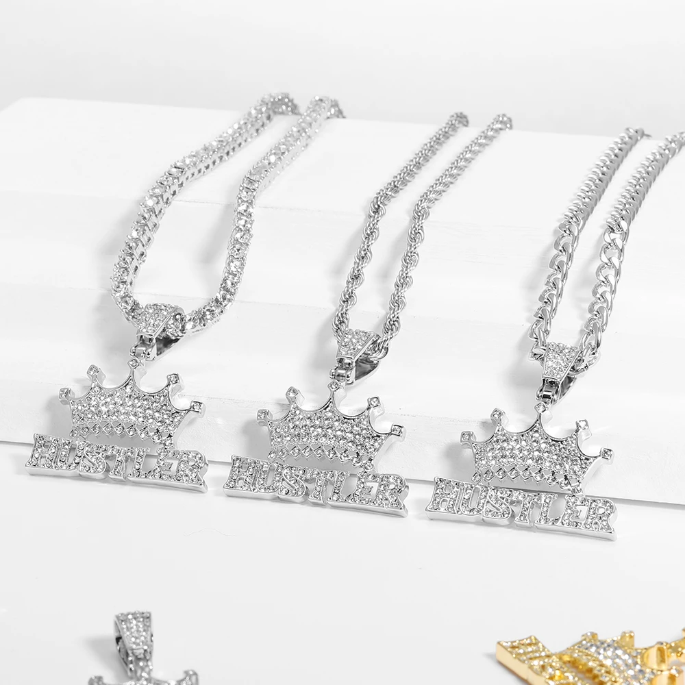 Льдом HUSTLER корона кулон ожерелье короткая цепочка ожерелье для женщин в стиле хип-хоп ювелирные изделия для мужчин теннис цепи, модное, с застежкой