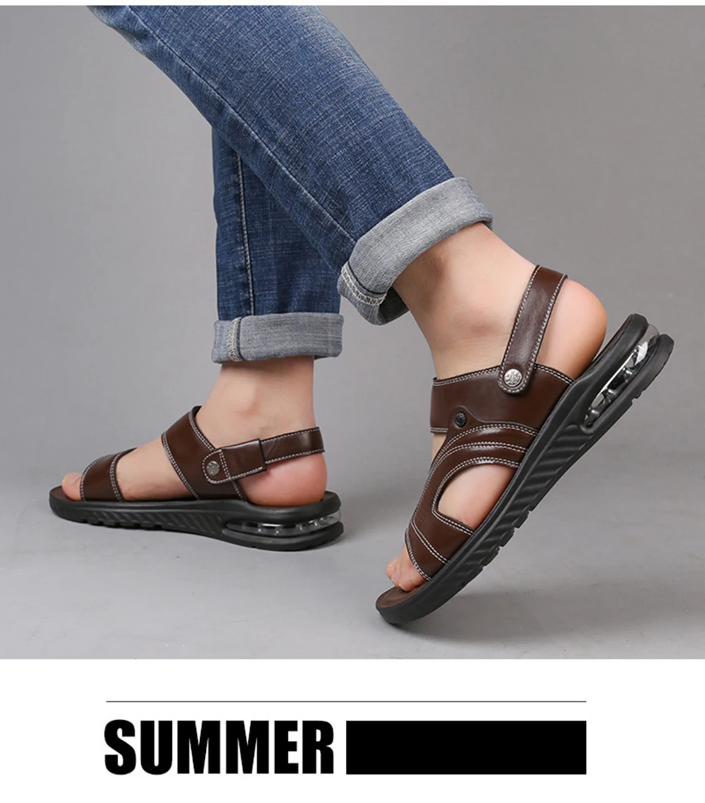 Сандалии мужские из спилка, модная пляжная обувь, Нескользящие, дышащие, Повседневные тапочки, летняя Уличная обувь