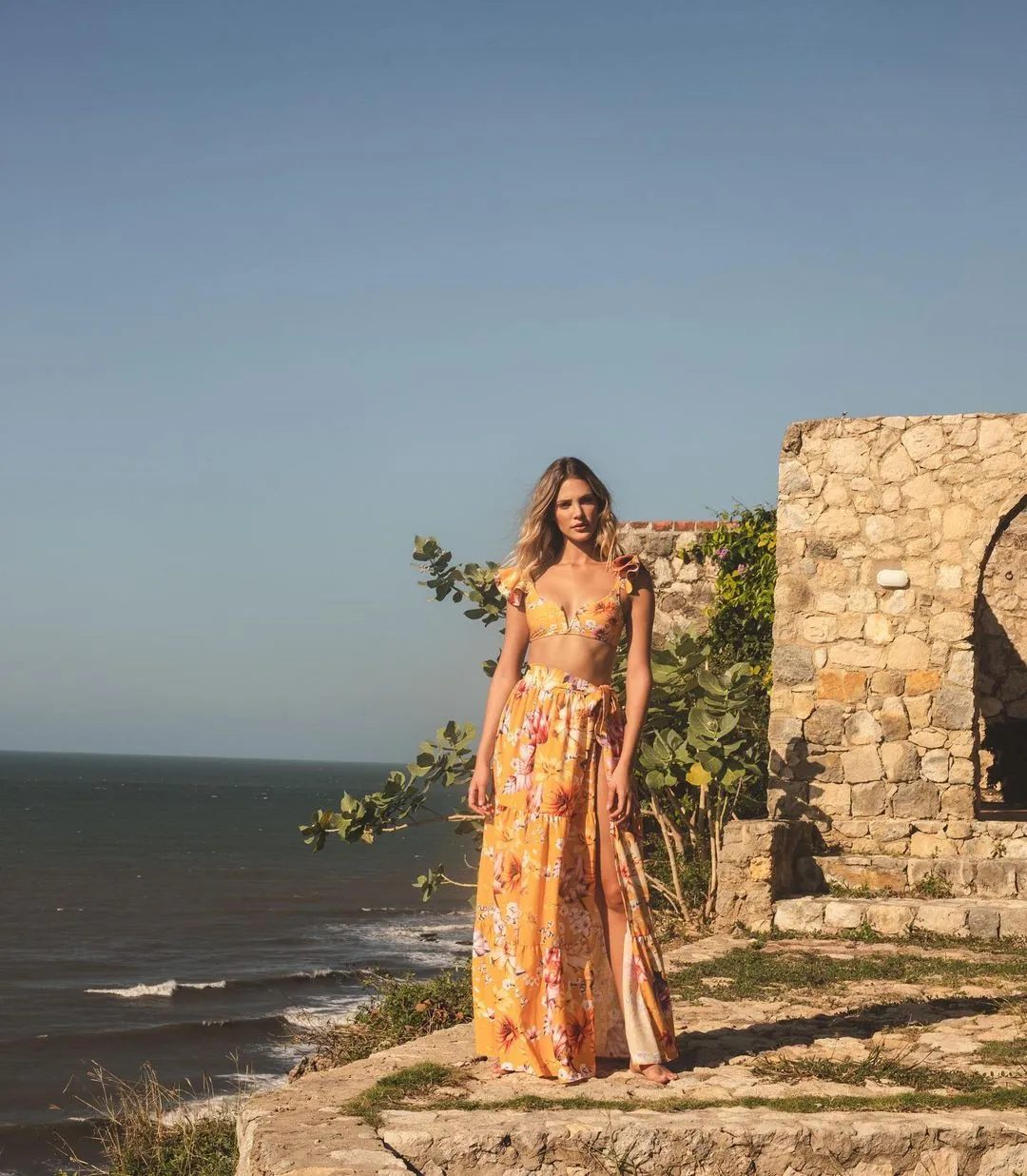 Комплект бикини с высокой талией и оборками, 2021, сексуальное черное пляжное платье, купальник, женский купальник, пляжная одежда с цветочным принтом и V-образным вырезом, купальные костюмы