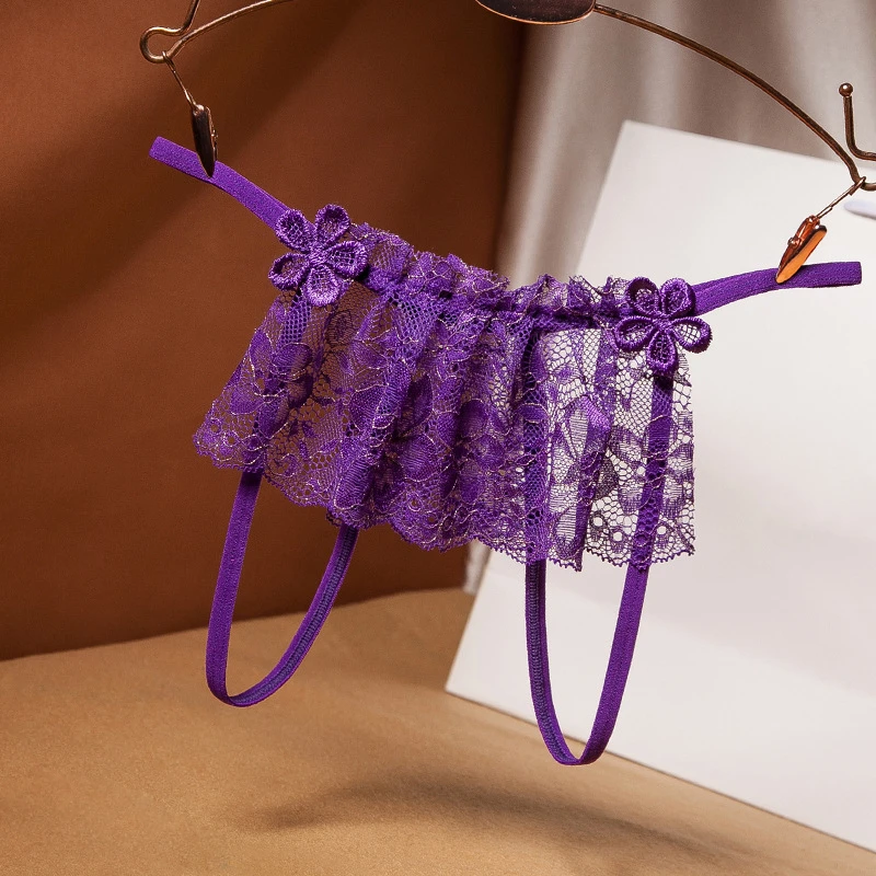 Трусики-стринги женские кружевные с вышивкой, низкой талией