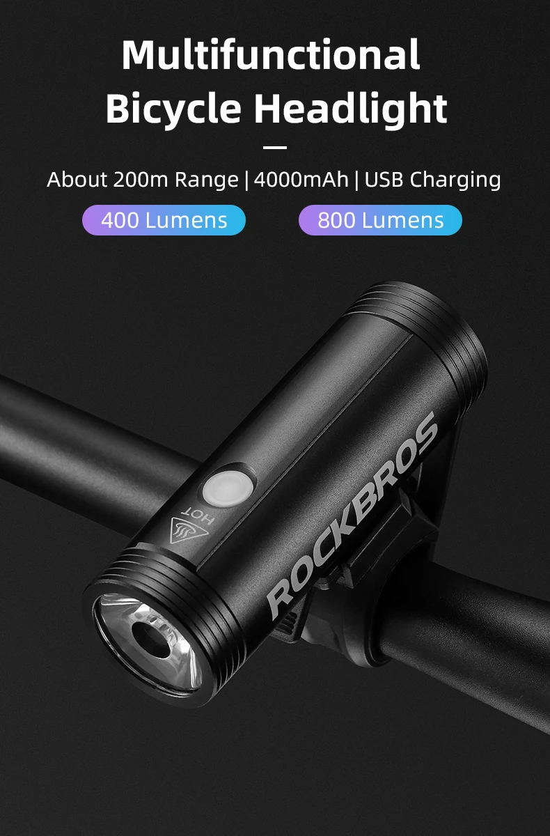 ROCKBROS 800 Люмен передняя фара для велосипеда светильник светодиодный USB Перезаряжаемые велосипедный светильник 2000 мАч, головной светильник вспышки светильник MTB лампа велосипедные аксессуары