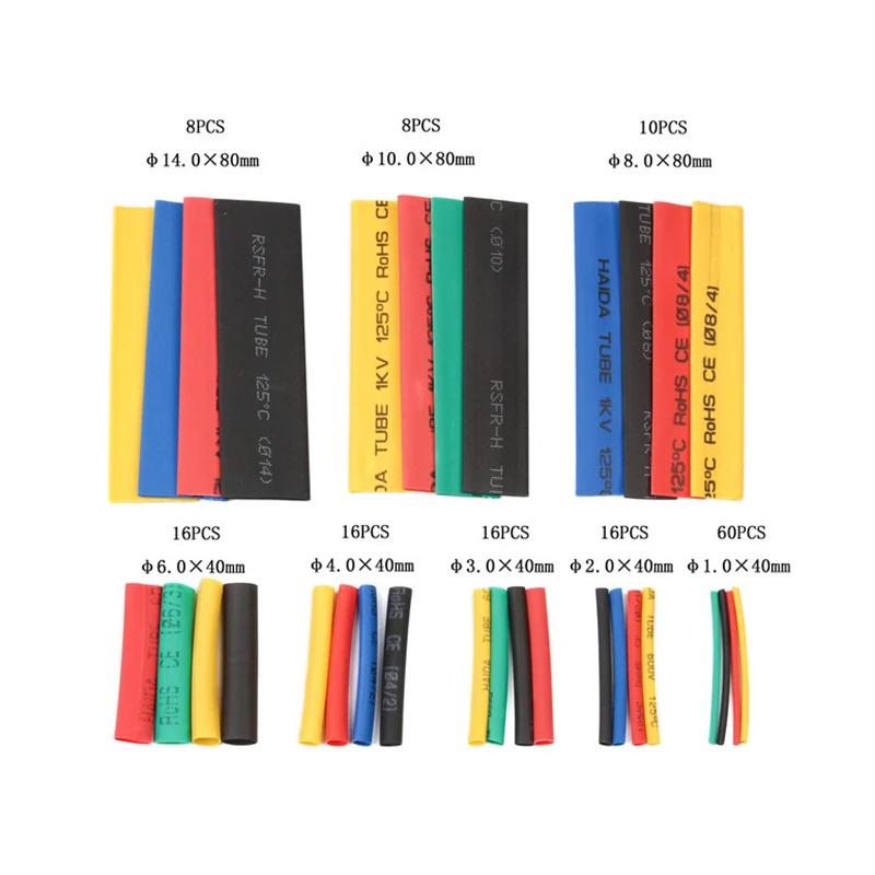 (Количество x внутренний диаметр x Одиночная длина) 60 шт. x 1,0x40 мм (желтый, черный, красный, зеленый) 30 шт. x 2,0x40 мм (желтый, черный, красный, синий) 20 шт. x 3,0x40 мм (желтый, черный, красный, зеленый) 16 шт. x 4,0x40 мм (желтый, черный, красный, синий) 12 шт. x 6,0x40 мм (желтый, черный, красный, зеленый) 10 шт. x 8,0x80 мм (желтый, черный, красный, синий) 8 шт. x 10,0x80 мм (желтый, черный, красный, зеленый) 8 шт. x 14,0x80 мм (желтый, черный, красный, синий)