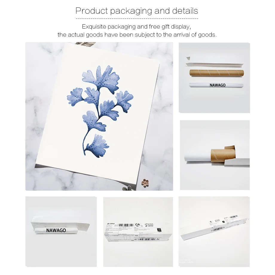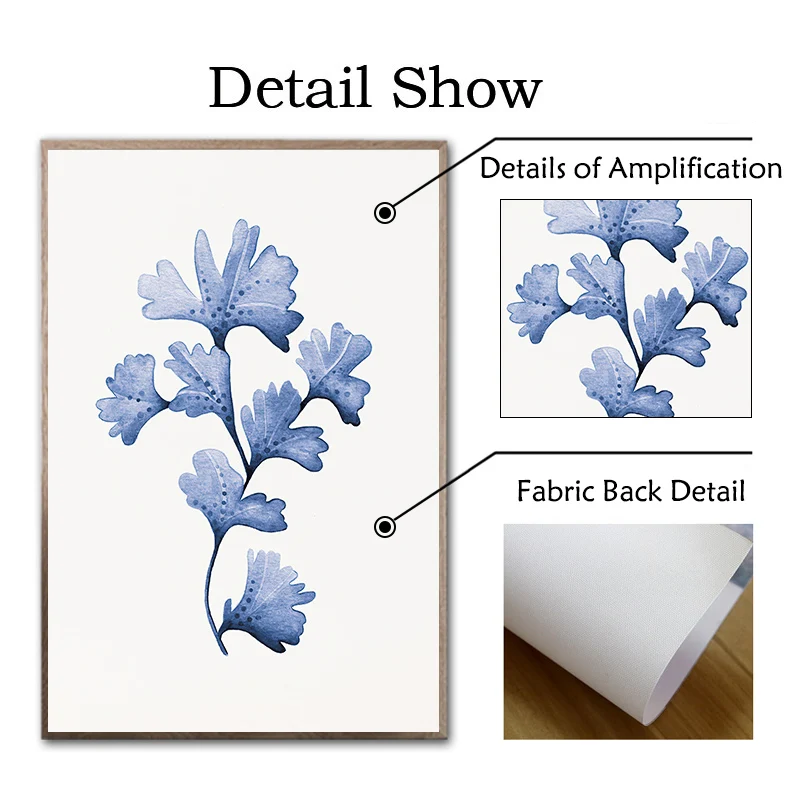 Винтажная Картина на холсте, акварель, синий цветок, коралловый лист, скандинавские постеры и принты для украшения гостиной
