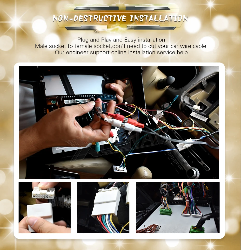 Это установка plug-and-play, но мы рекомендуем вам найти местного профессионального инженера по установке или автомобильный магазин a & V, чтобы установить наше оборудование в вашем автомобиле, чтобы вы могли избежать повреждения приборной панели и самого хоста. Конечно, если вам нужна поддержка, вы можете связаться с нами.