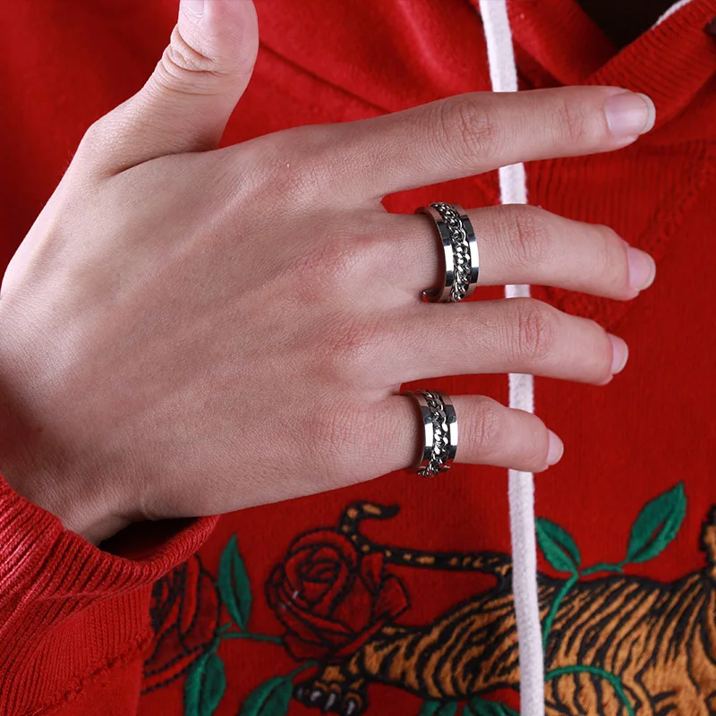 Мужское кольцо из нержавеющей стали, вращающаяся цепь, мужское коль...