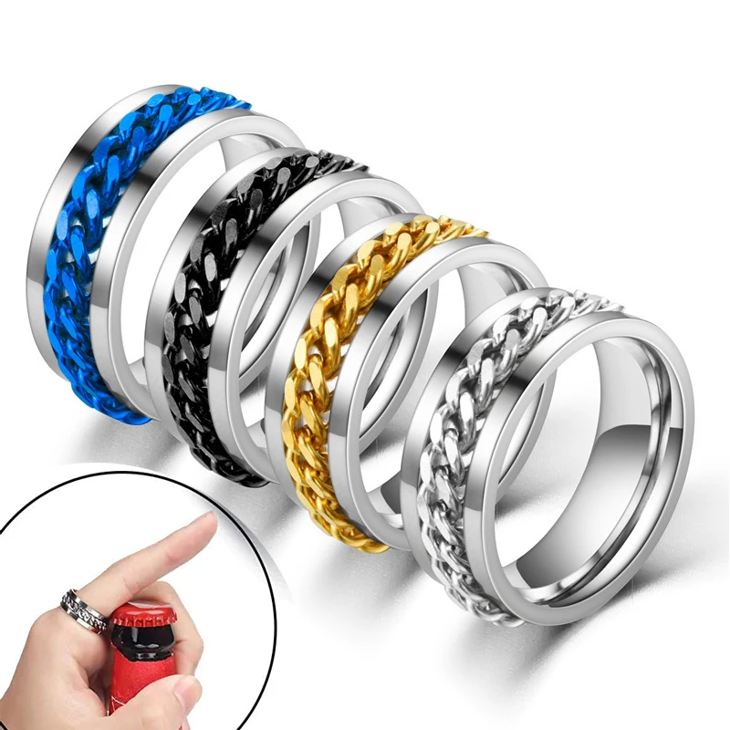Титан Сталь вращающаяся цепь кольца для мужчин и женщин кольцо Обтекателя втулки Многофункциональный палец кольцо для мужчин открывалка для бутылок кольцо 8 мм