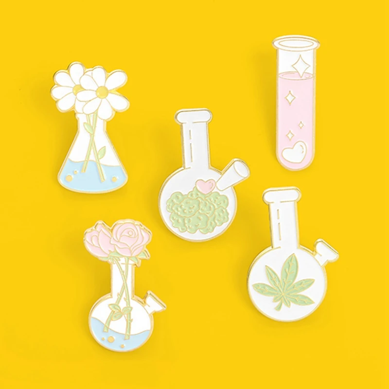 Лабораторные эмалевые булавки для любителей растений, на заказ, брошь в виде колбы с тестовой трубкой, значок на лацкан, сумка, мультяшный ученый, ювелирные изделия, подарок для детей, друзей