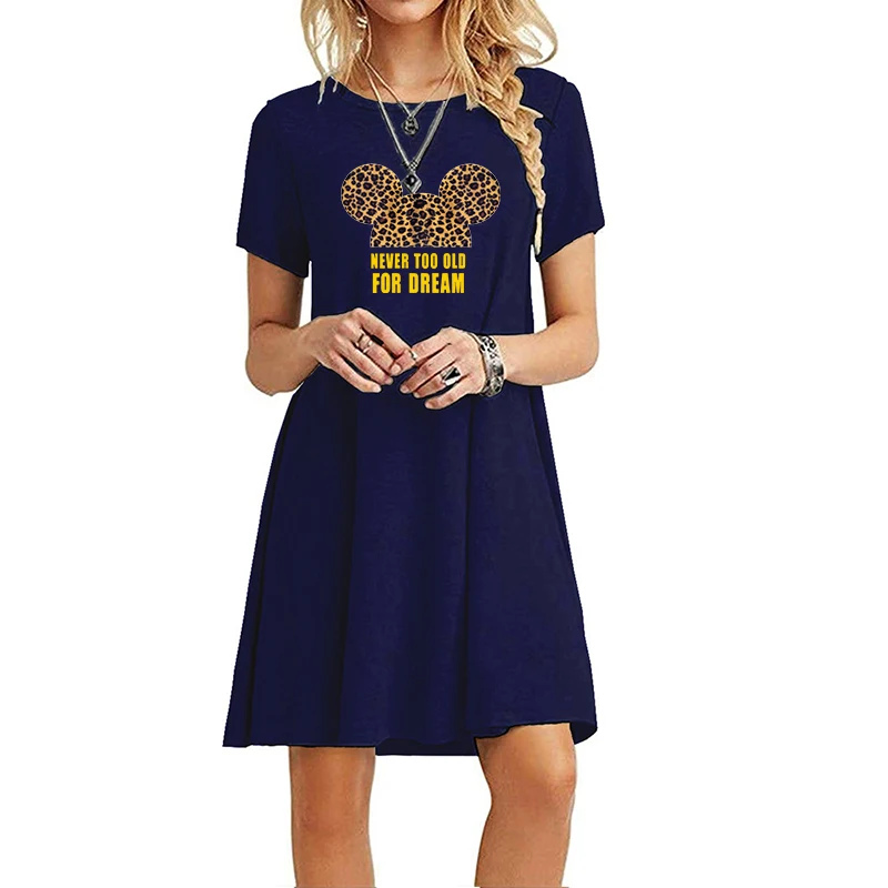 Микки Маус женские повседневные платья, принт с героями мультфильмов Kawaii, принт в стиле бохо платье летнее платье с короткими рукавами трапециевидной формы подол вечерние в винтажном стиле; Vestidos