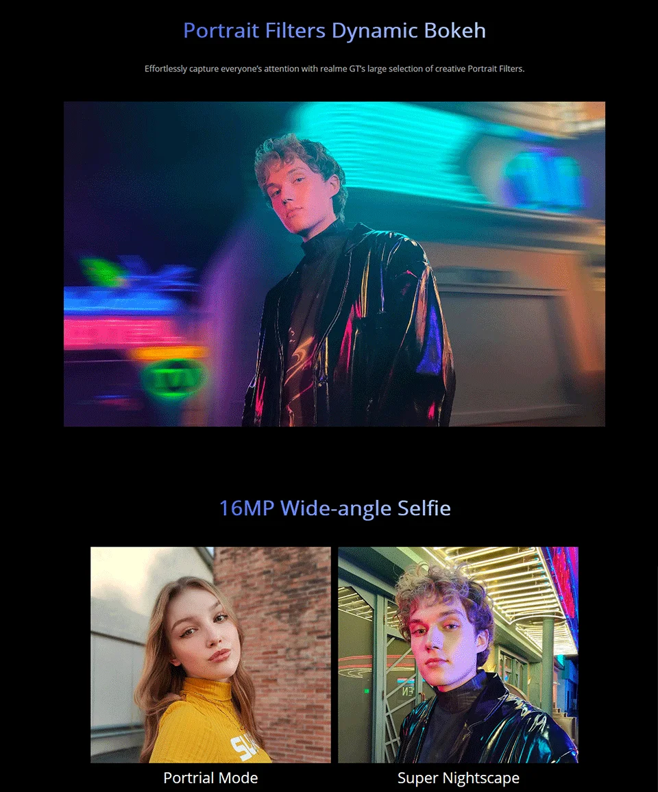 Портретные фильтры динамический бокеЛегко запечатлейте внимание всех с помощью realme GT большого выбора креативных портретных фильтров.