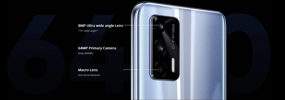8 Мп ультра широкоугольный объектив (119 ° Широкий угол *)Основная камера 64 мп (Sony IMX682)Макрообъектив (расстояние фокусировки 4 см)