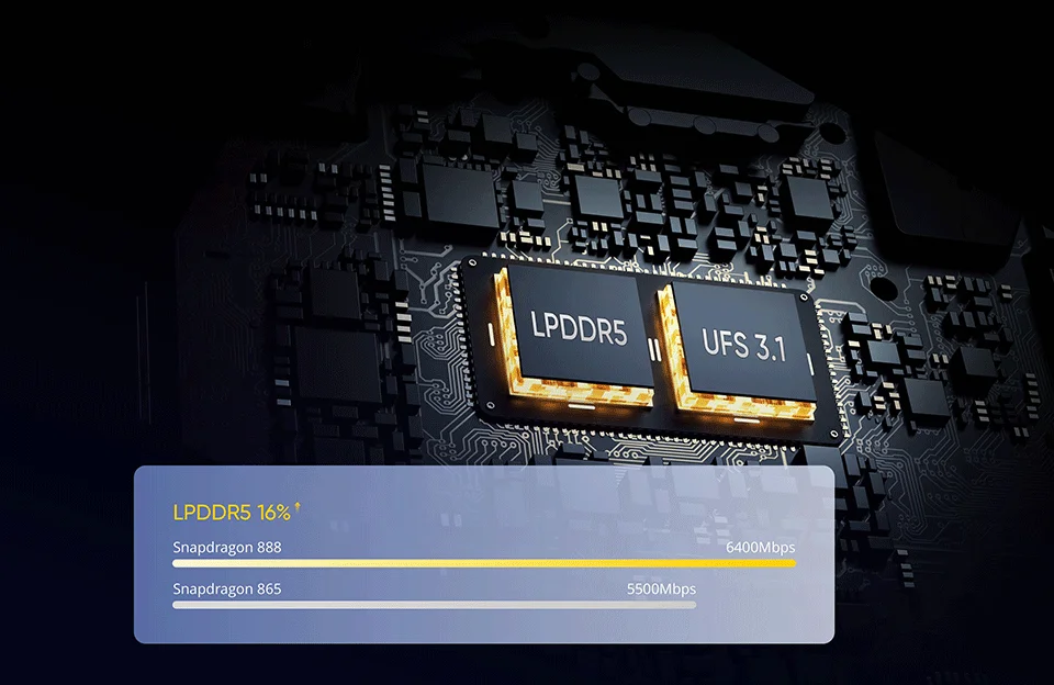 Процессор Qualcomm Snapdragon 888 5GПроцессор Qualcomm Snapdragon 888 5G, построенный по передовой технологии 5 нм, обеспечивает высокую производительность. В сочетании с полностью модернизированным Cortex-X1 большим ядром и встроенным базовым диапазоном X60, это означает, что вы можете легко запускать свою любимую тяжелую игру, пока вы побалуйте себя в мире 5G.25% обновление процессораОбновление 35% GPU70% обновление производительности AI