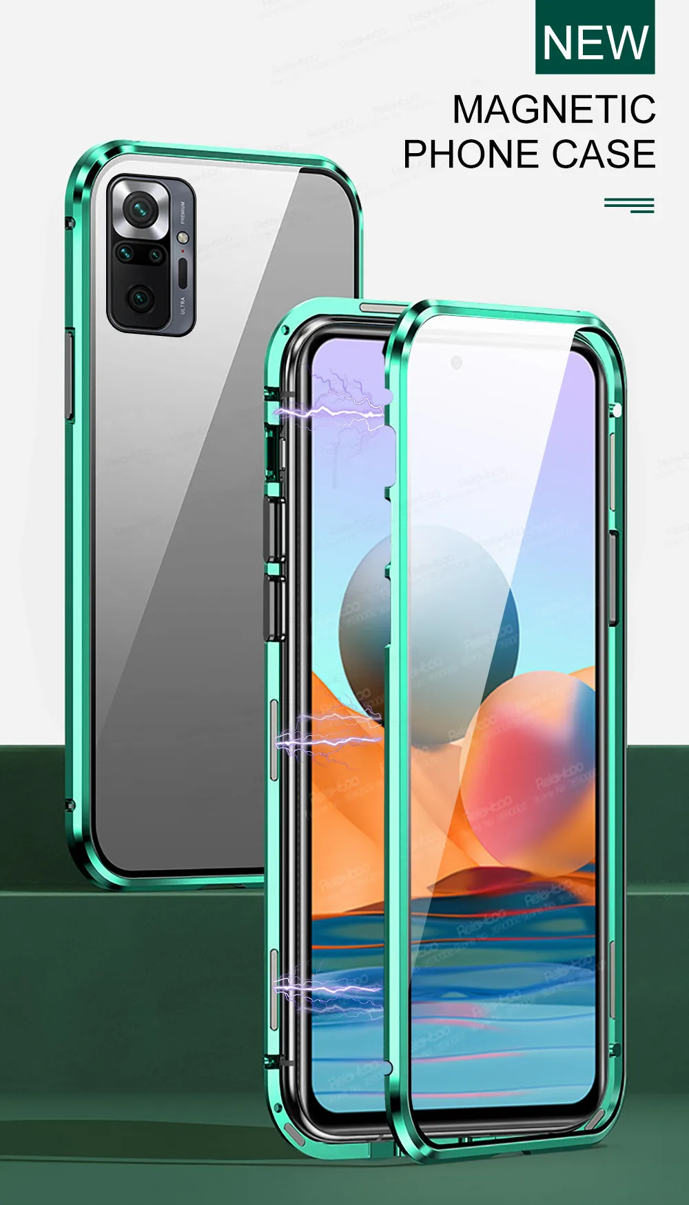 Feature 2Magnetic Adsorption Metal Bumper Double sided tempered case