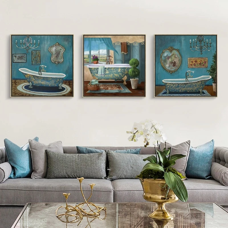 Современная Ретро Картина на холсте винтажные реалистичные работы фрески плакаты и принты настенные картины для украшения ванной комнаты