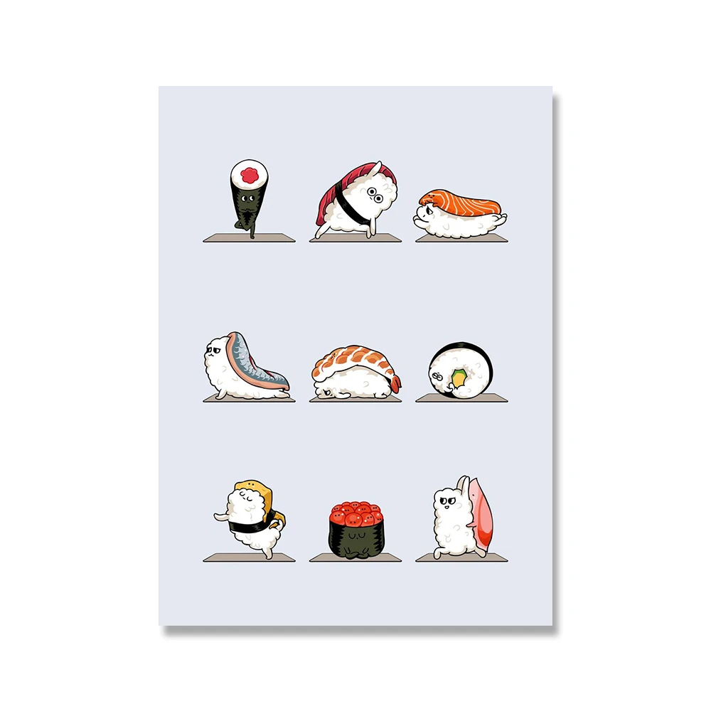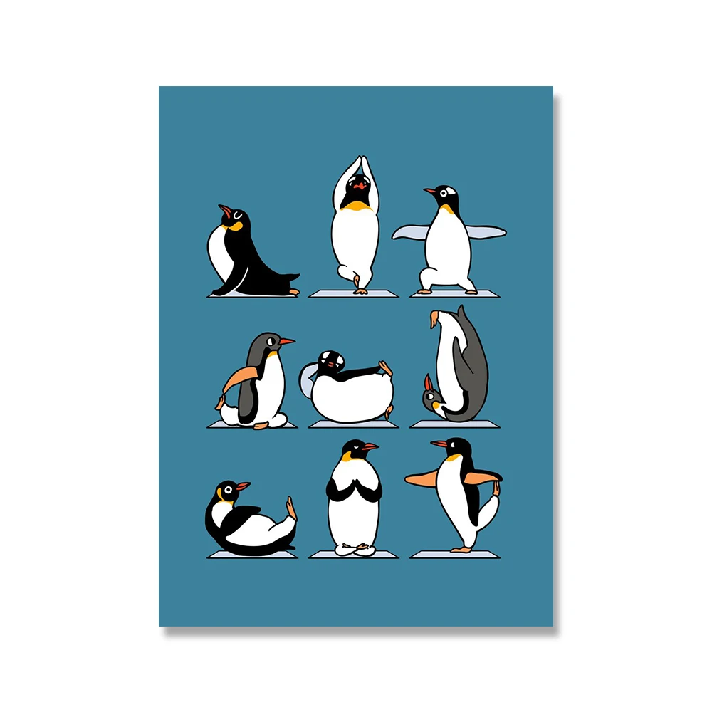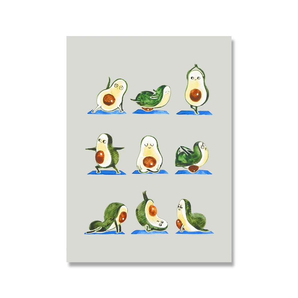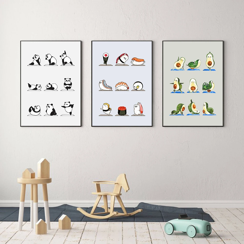 Милые животные Йога панда Пингвин сиамский Кот Холст Плакаты авокадо суши акварельные принты скандинавский настенный Рисунок декор для детской комнаты