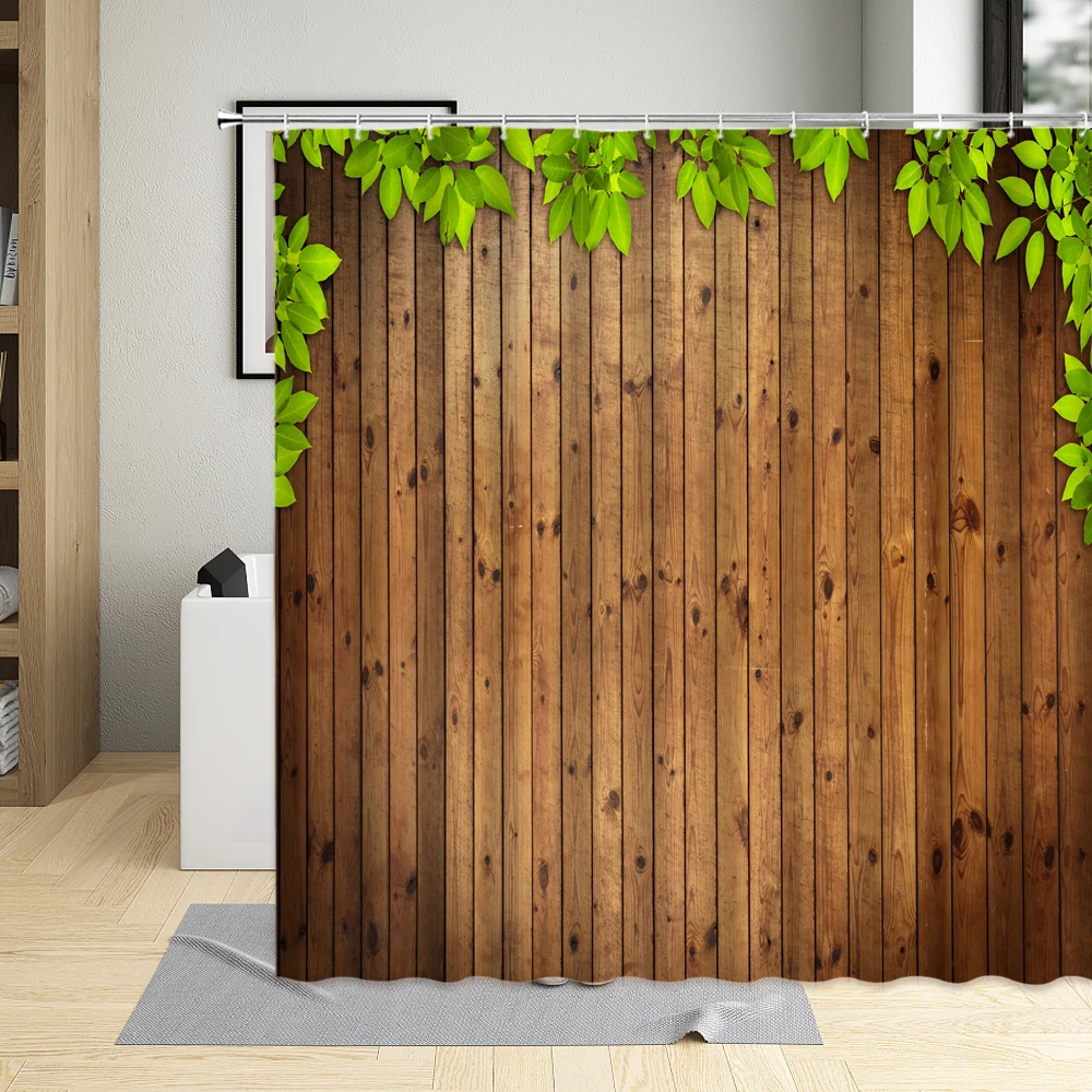 Ретро занавеска для душа с текстурой древесины, ностальгические цве...